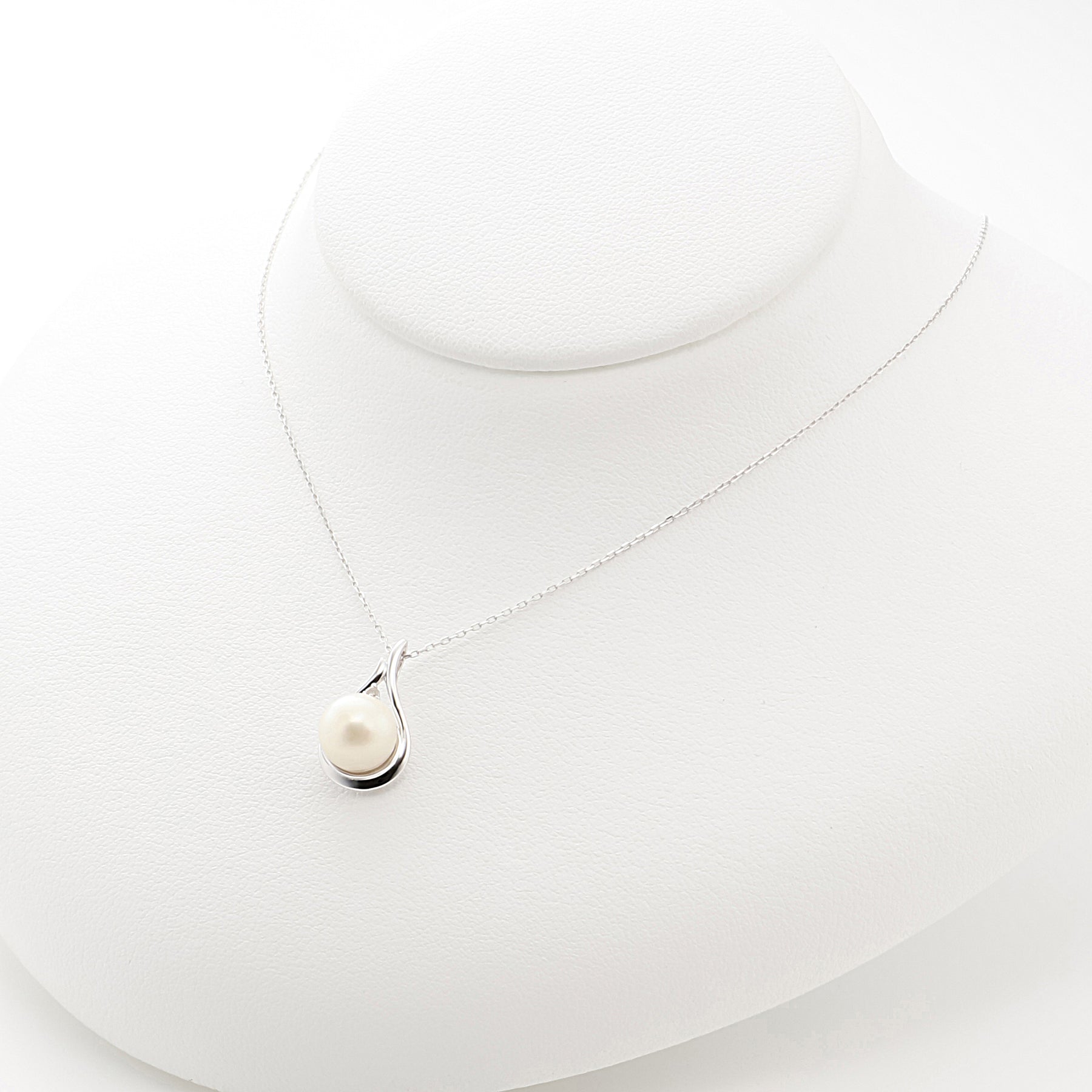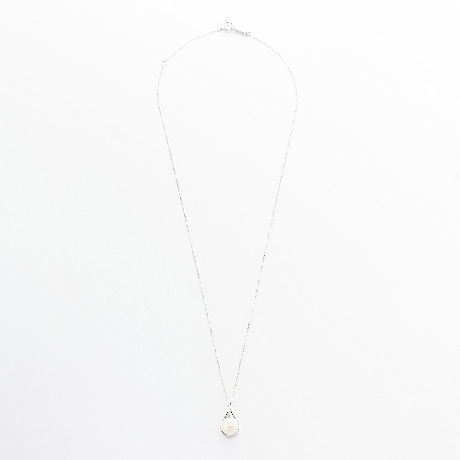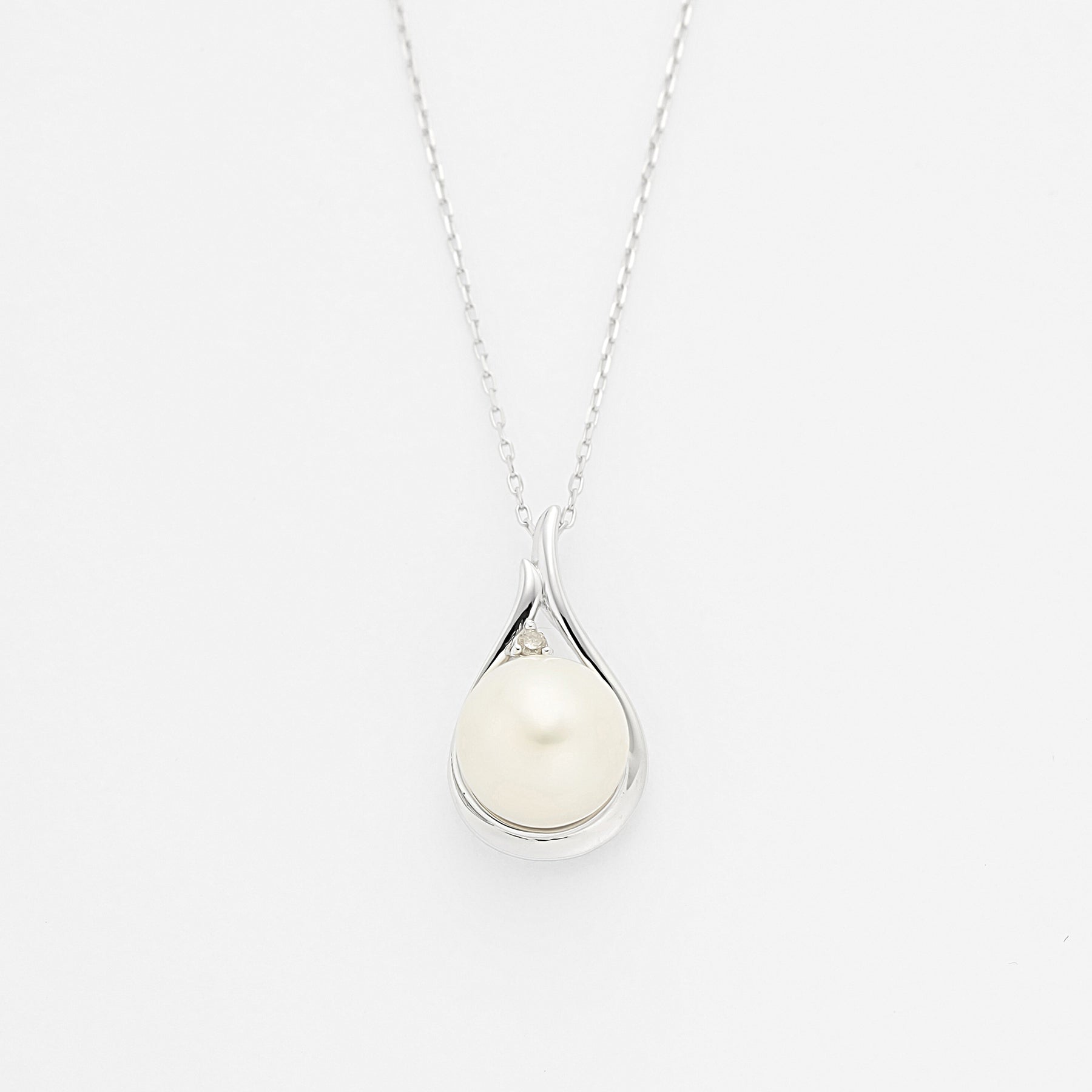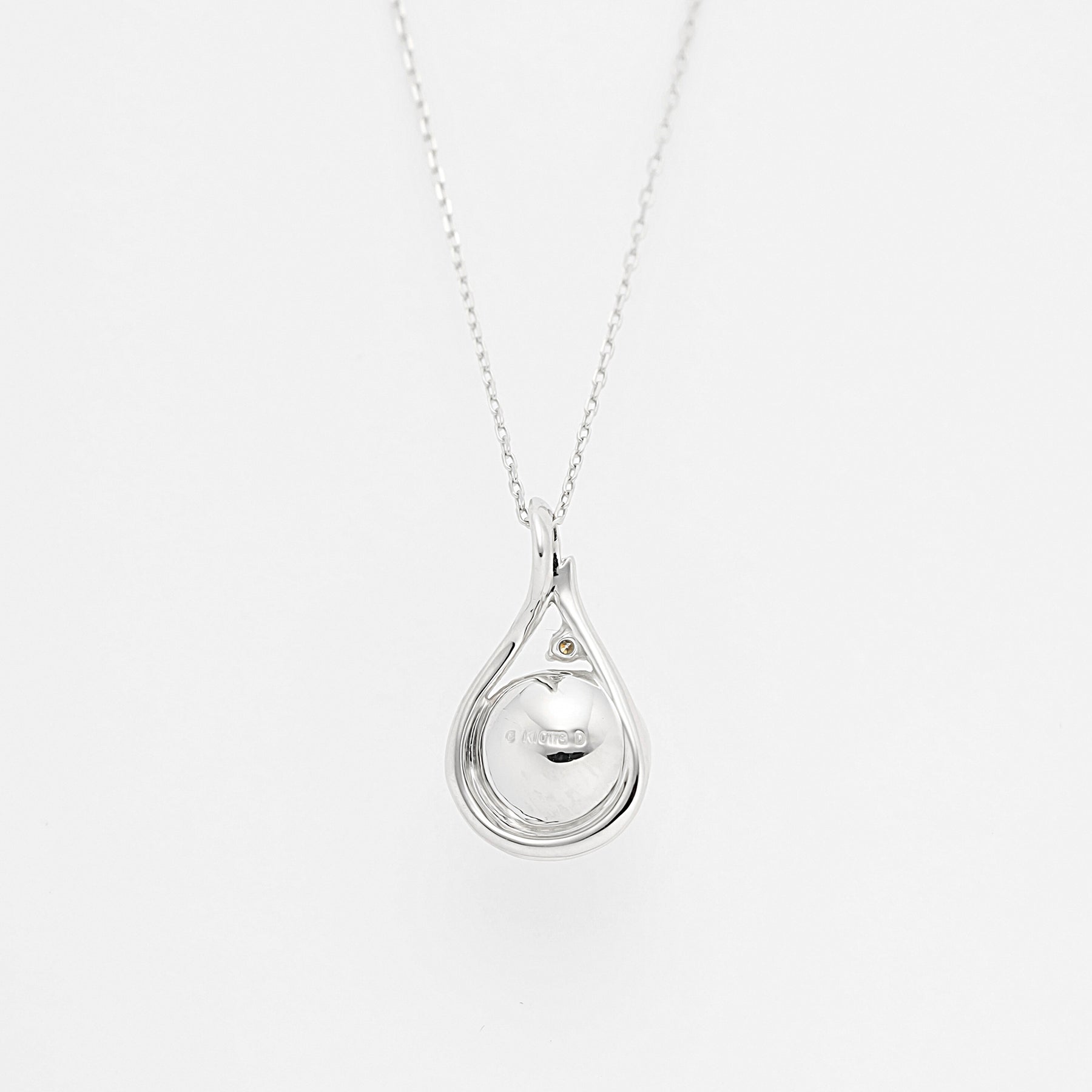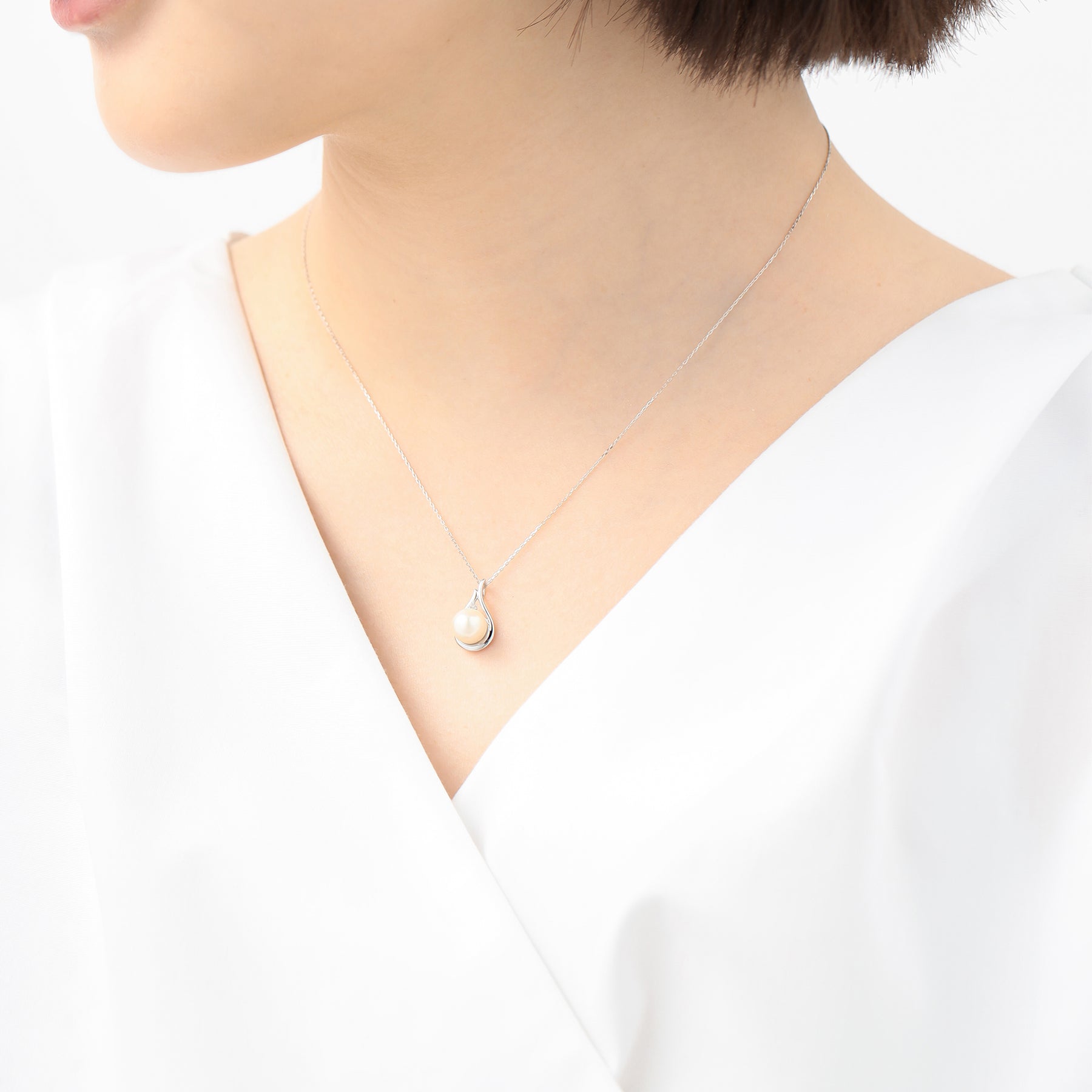 あこや真珠をホワイトゴールドで包み込み、どこかクラシカルな雰囲気のネックレス。