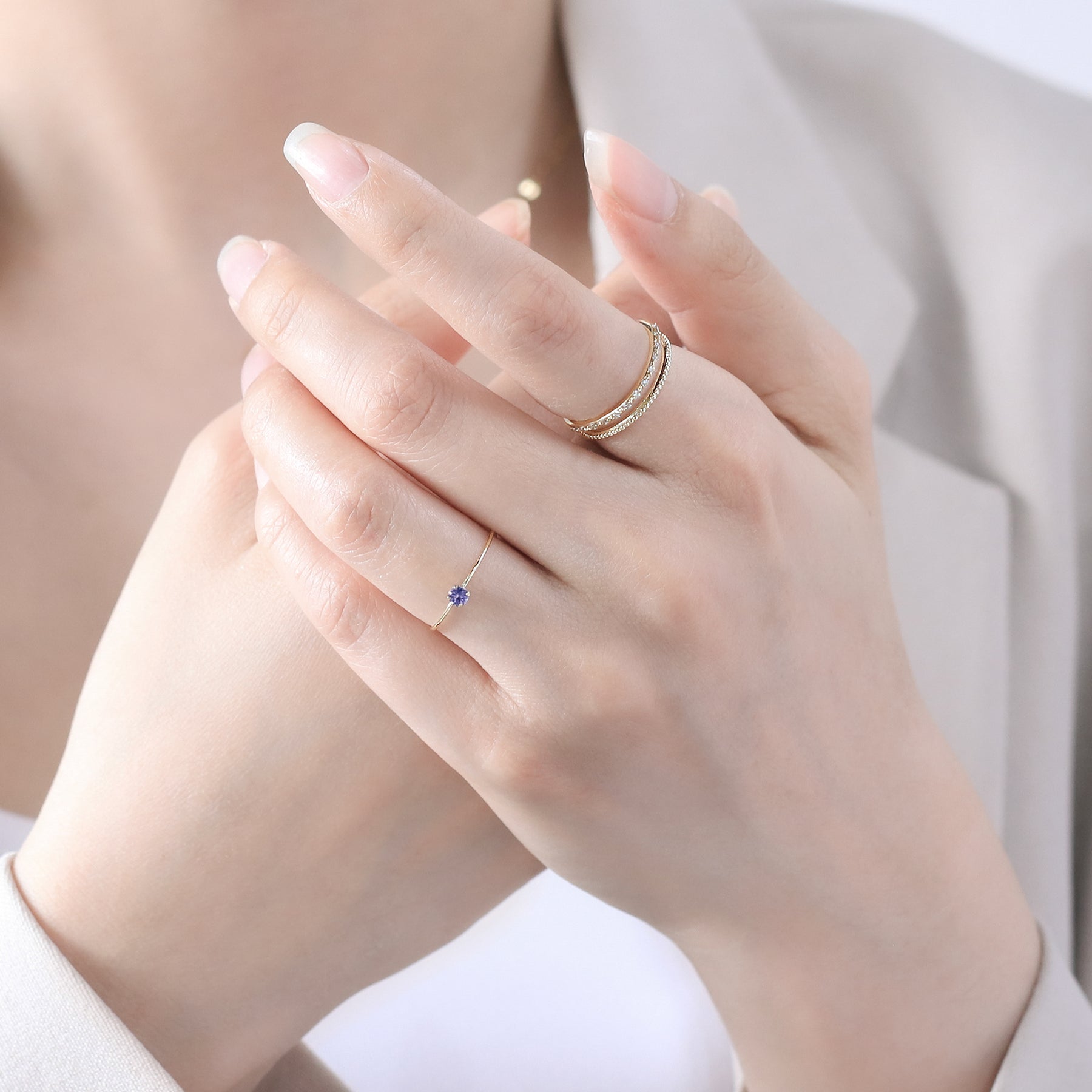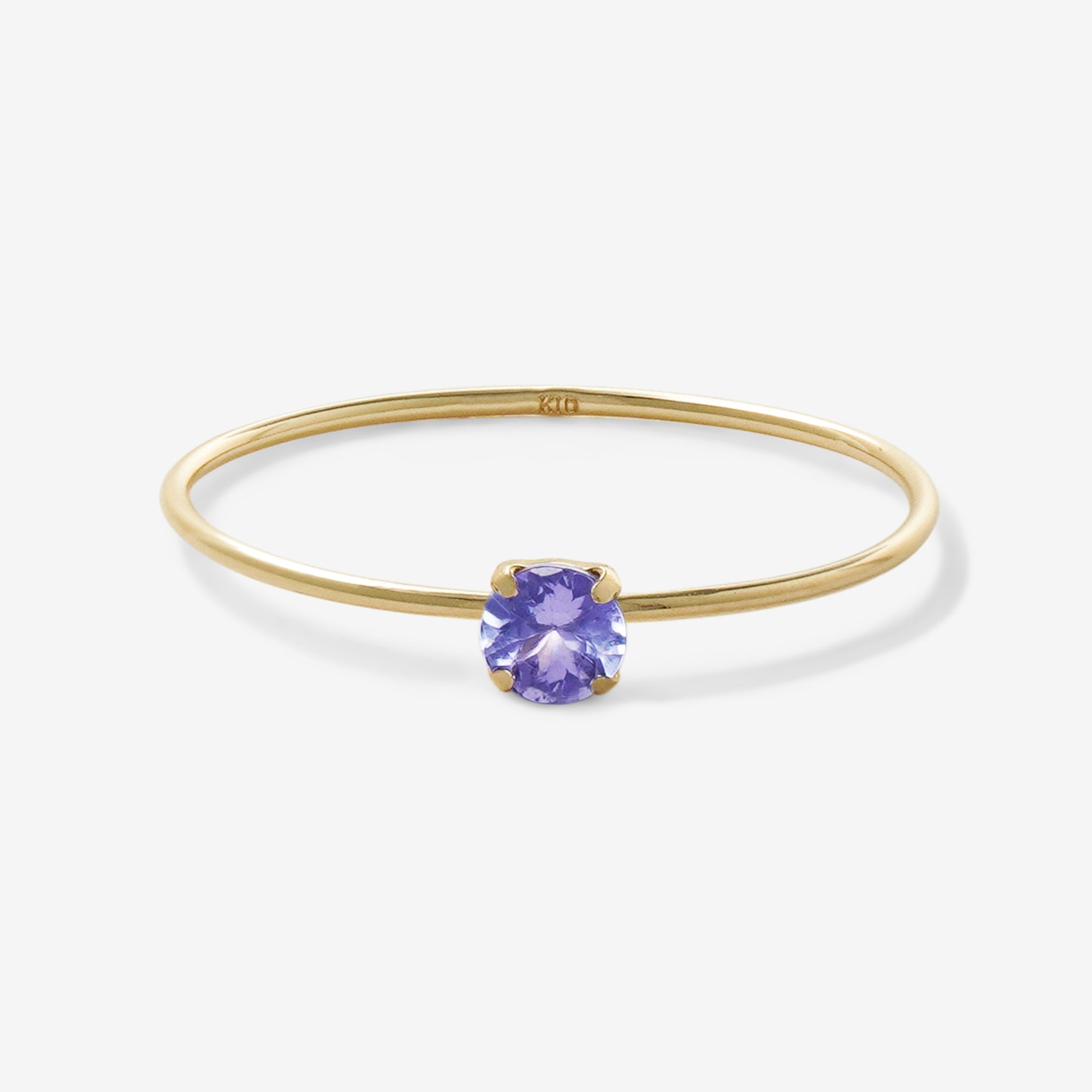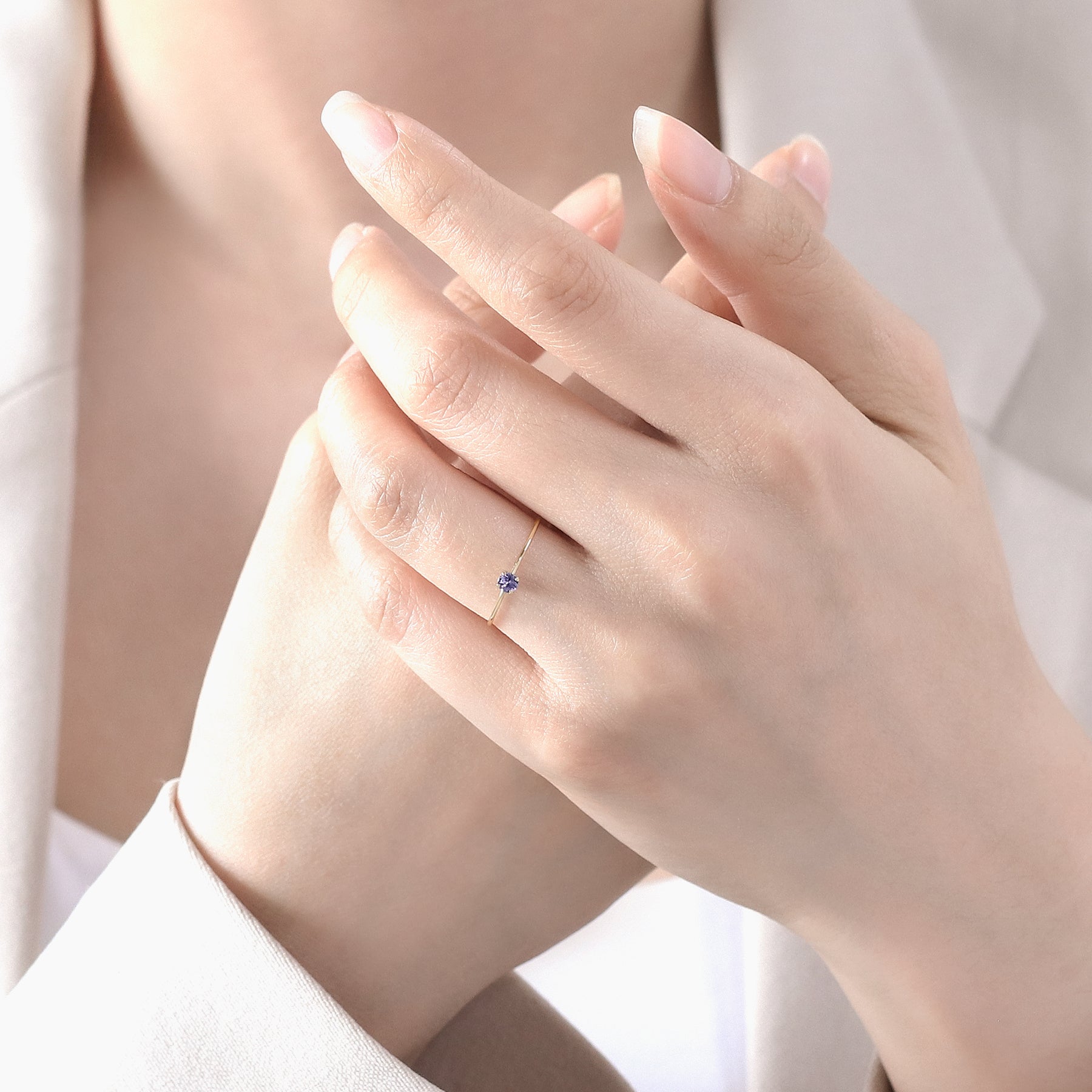 【Birthstone Collection】1粒のタンザナイトが、洗練された神秘的な印象を添えるイエローゴールドのリング。青紫のタンザナイトの色彩が、ゴールドの繊細な輝きと美しく調和し、凛とした美しさを指先に宿します。シンプルながらも洗練されたデザインは、オフィススタイルにも自然に馴染み、日常にさりげない華やかさをプラス。忙しい毎日を過ごす大人の女性にこそふさわしいシンプルなジュエリーは、自分へのご褒美としてはもちろん、大切な方へのギフトにもおすすめです。タンザナイトは12月の誕生石です。石言葉は「知性」「冷静」。正しく冷静な判断力を与え、周囲から影響を受けず、人生を良い方向へ導いてくれると言われています。成功を収めたいとき、判断力・実行力が必要な時にお守りになってくれます。【ATTENTION】※熱や紫外線、湿度の影響により変色や変質、劣化の恐れがございます。ご使用後は柔らかな布で汚れを拭き取ってから、直射日光の当たらない場所での保管をお願いいたします。※天然石は素材の特性により、色や形、風合いなどが画像と多少異なる場合がございます。また、多少のインクルージョンやクラックがある場合がございます。予めご了承ください。※天然石は他の宝石と比べて柔らかく傷がつきやすいため、衝撃や摩擦にご注意ください。また、他のジュエリーと触れないように保管してください。※強い力を加えると変形の原因になりますので、お取り扱いにはご注意ください。