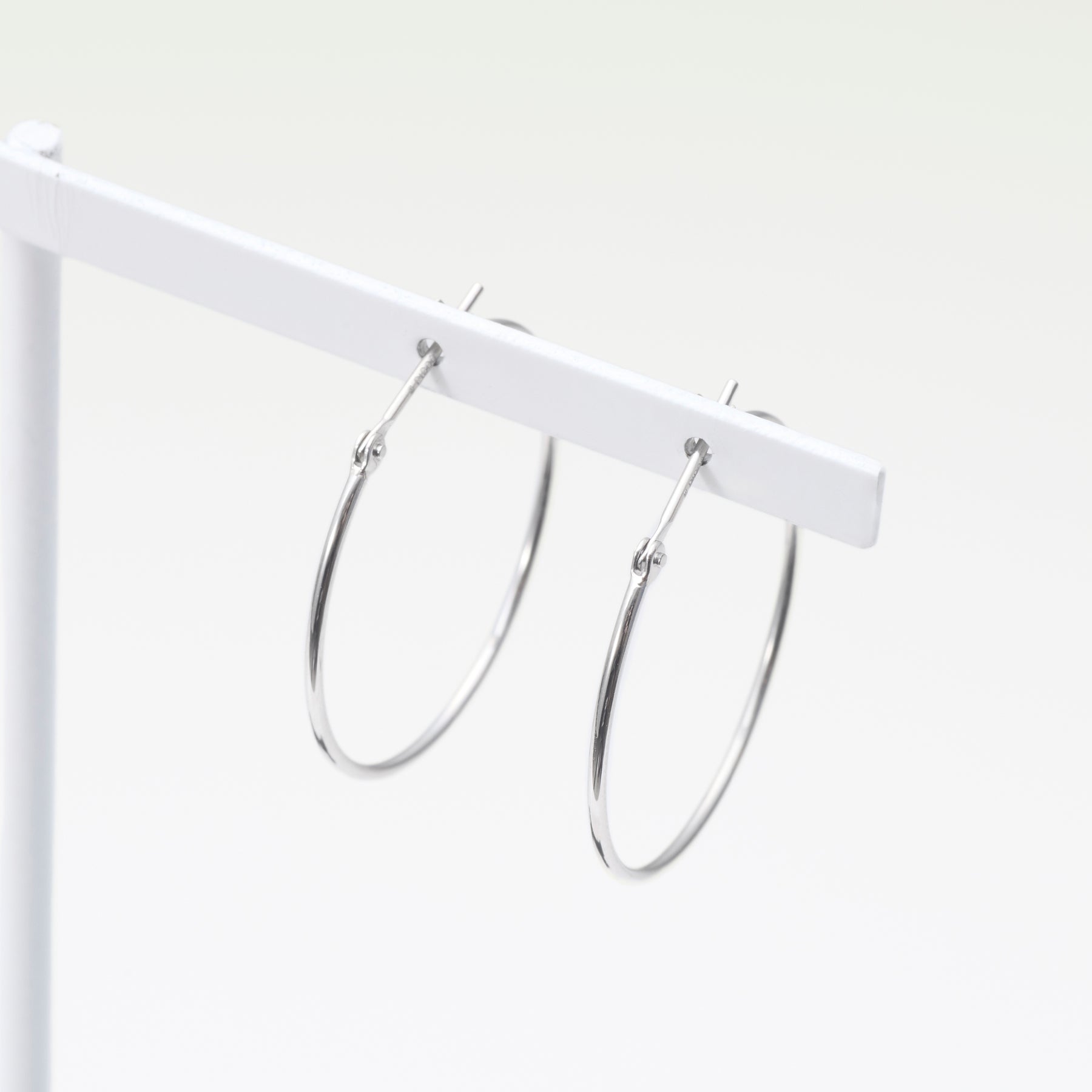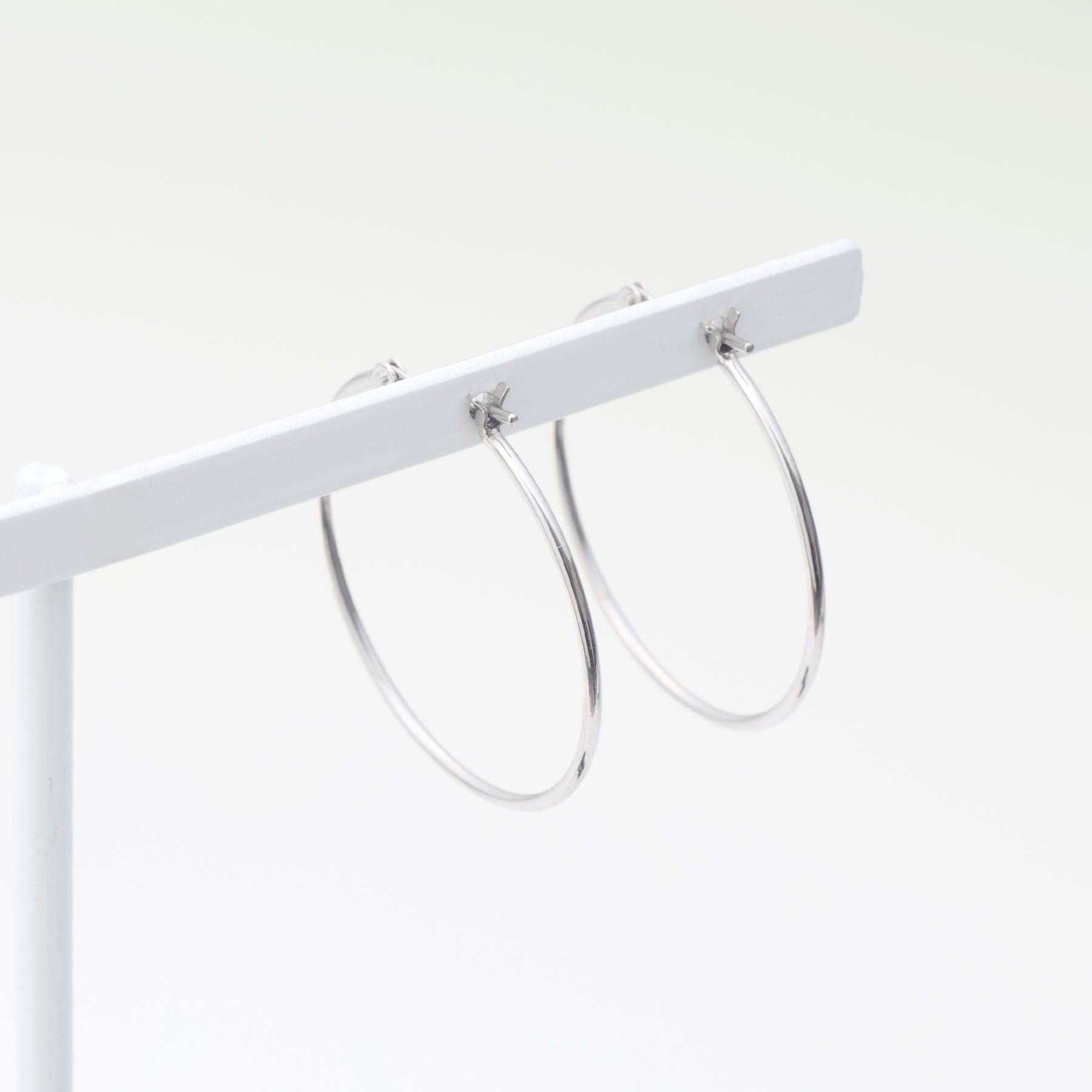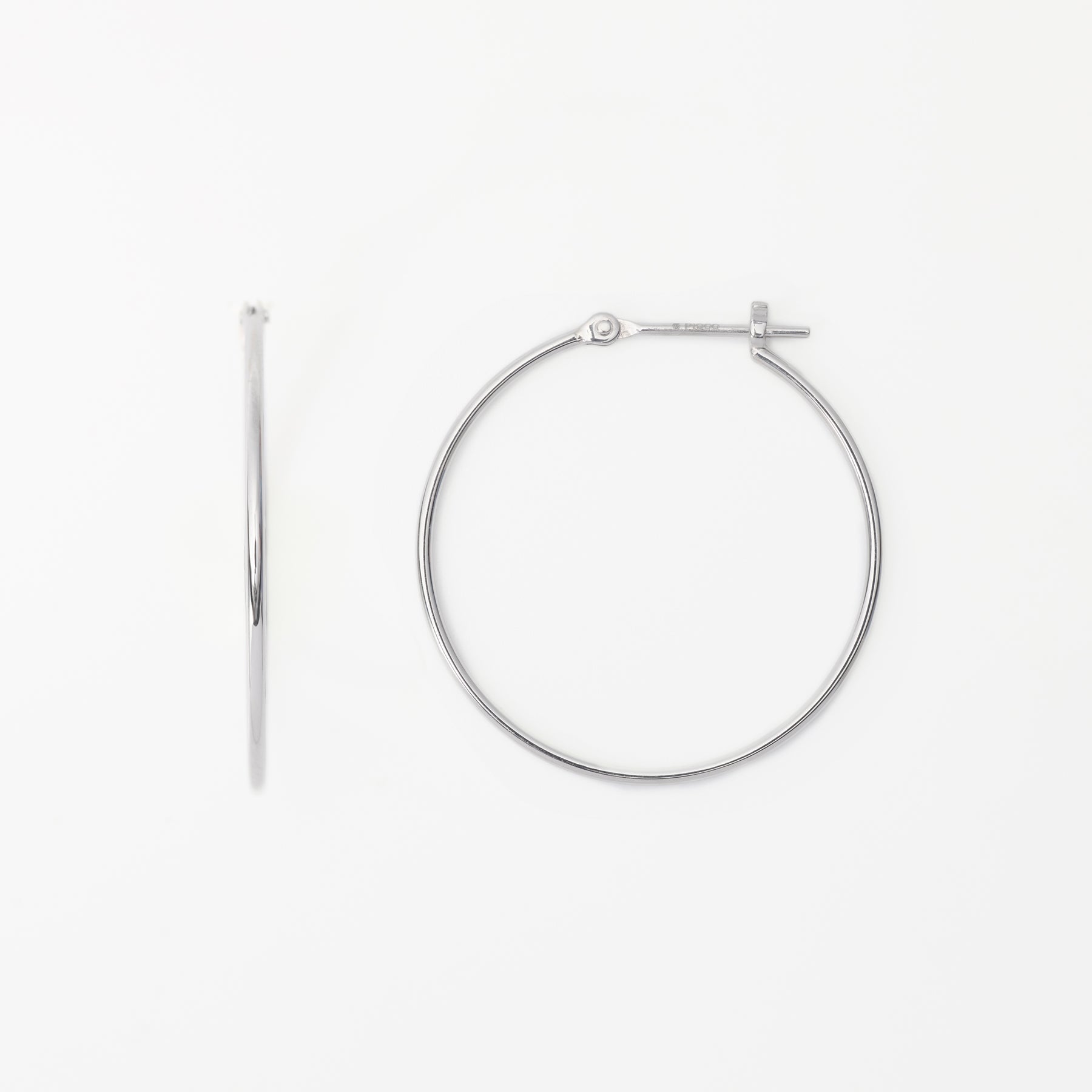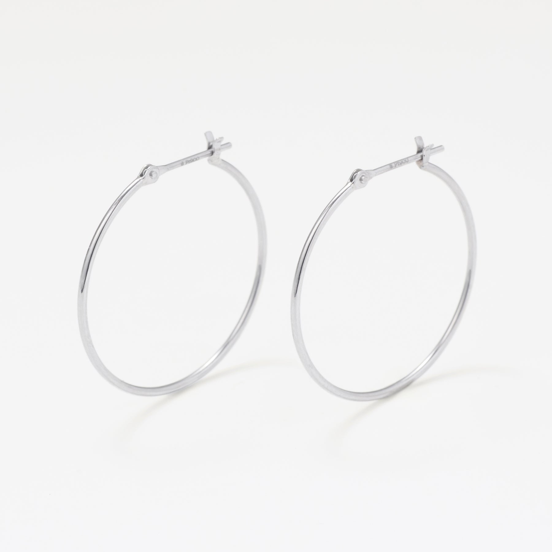 洗練されたシンプルなフォルムに、プラチナの澄んだ輝きをまとわせたフープピアス。