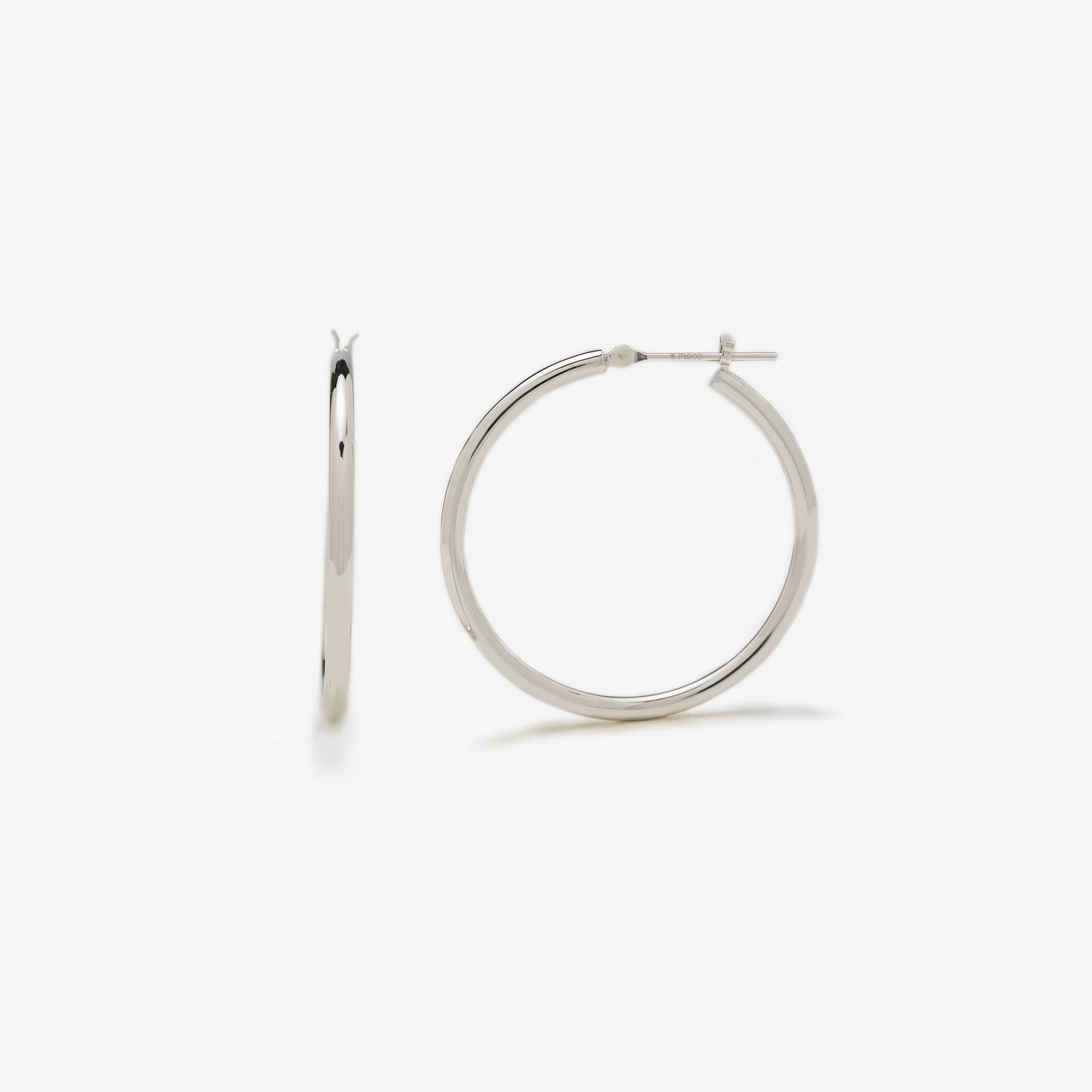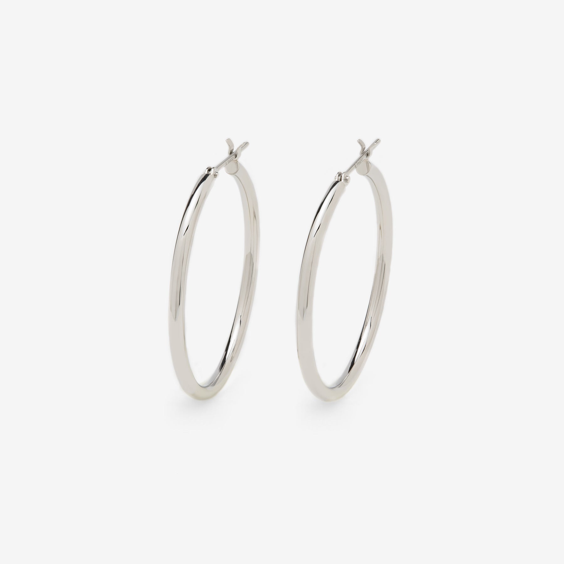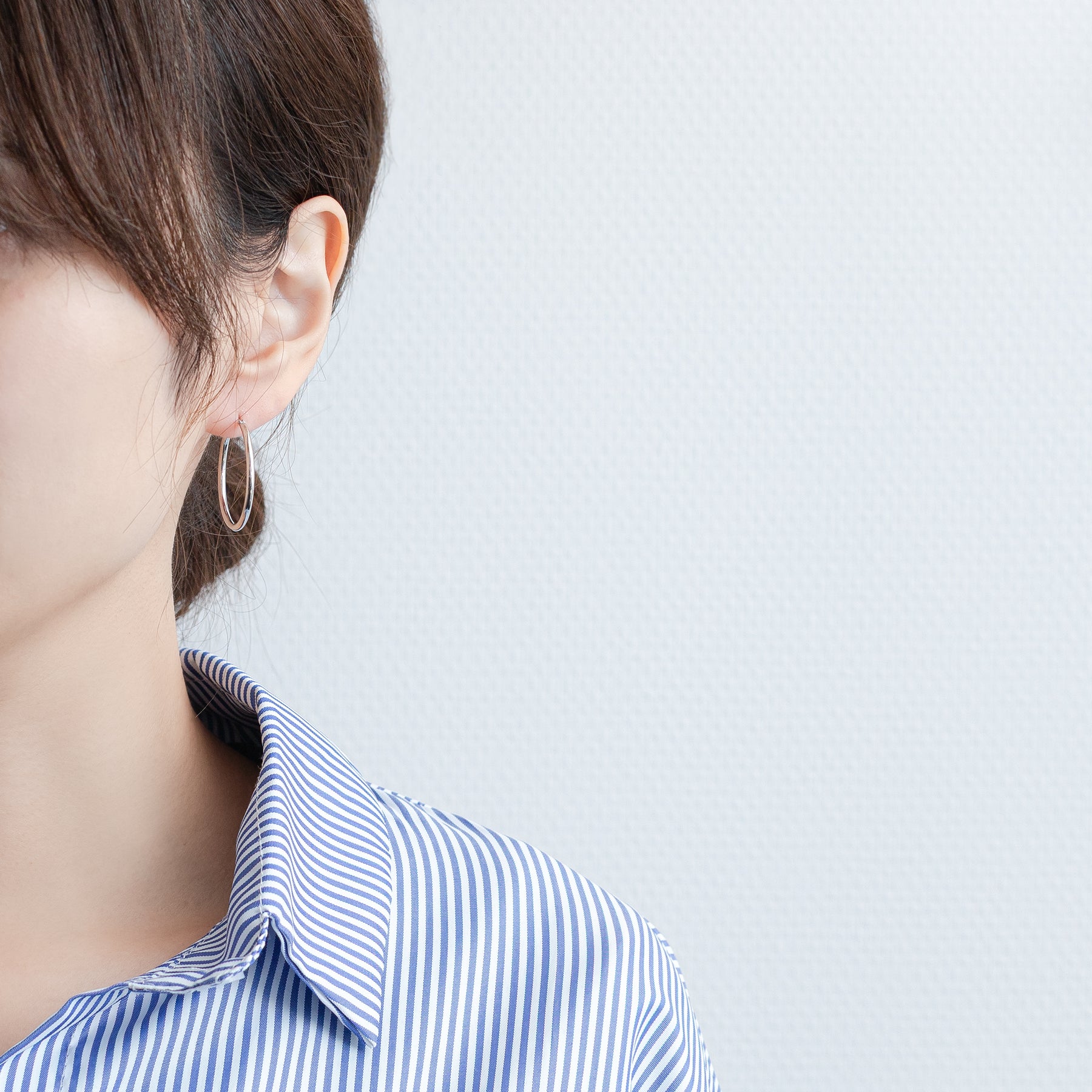 凛とした輝きが印象的な、シンプルで洗練されたプラチナのフープピアス。