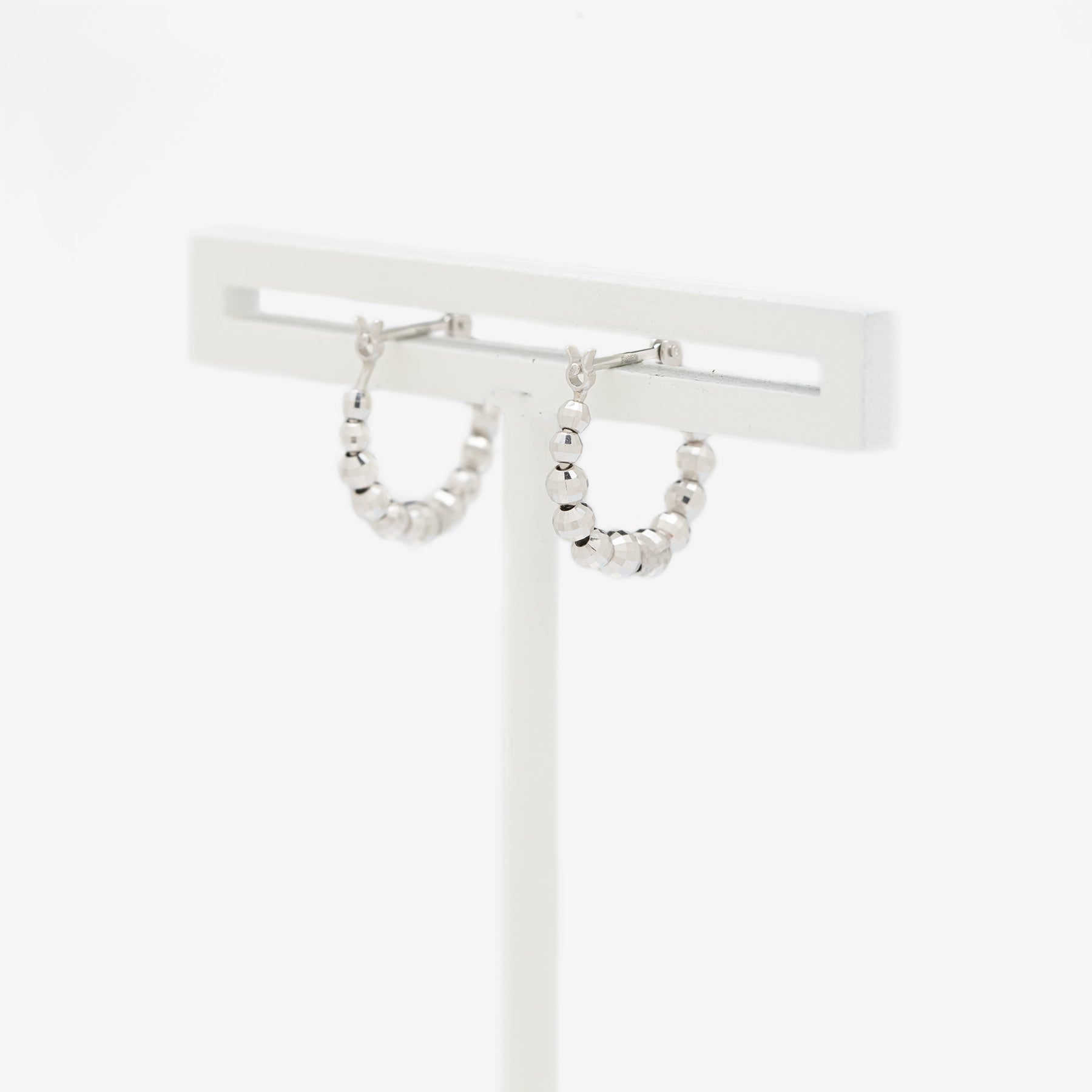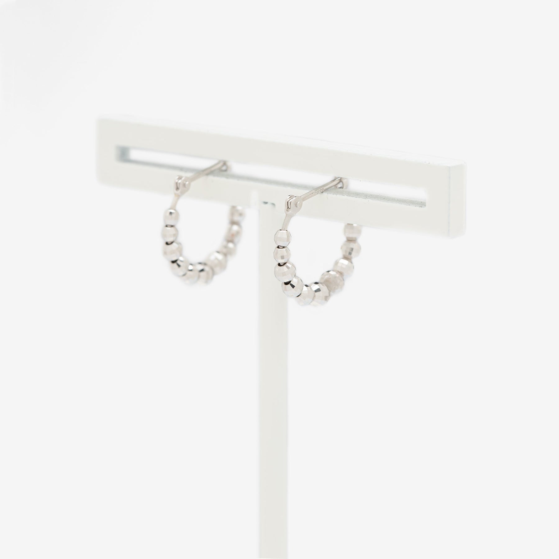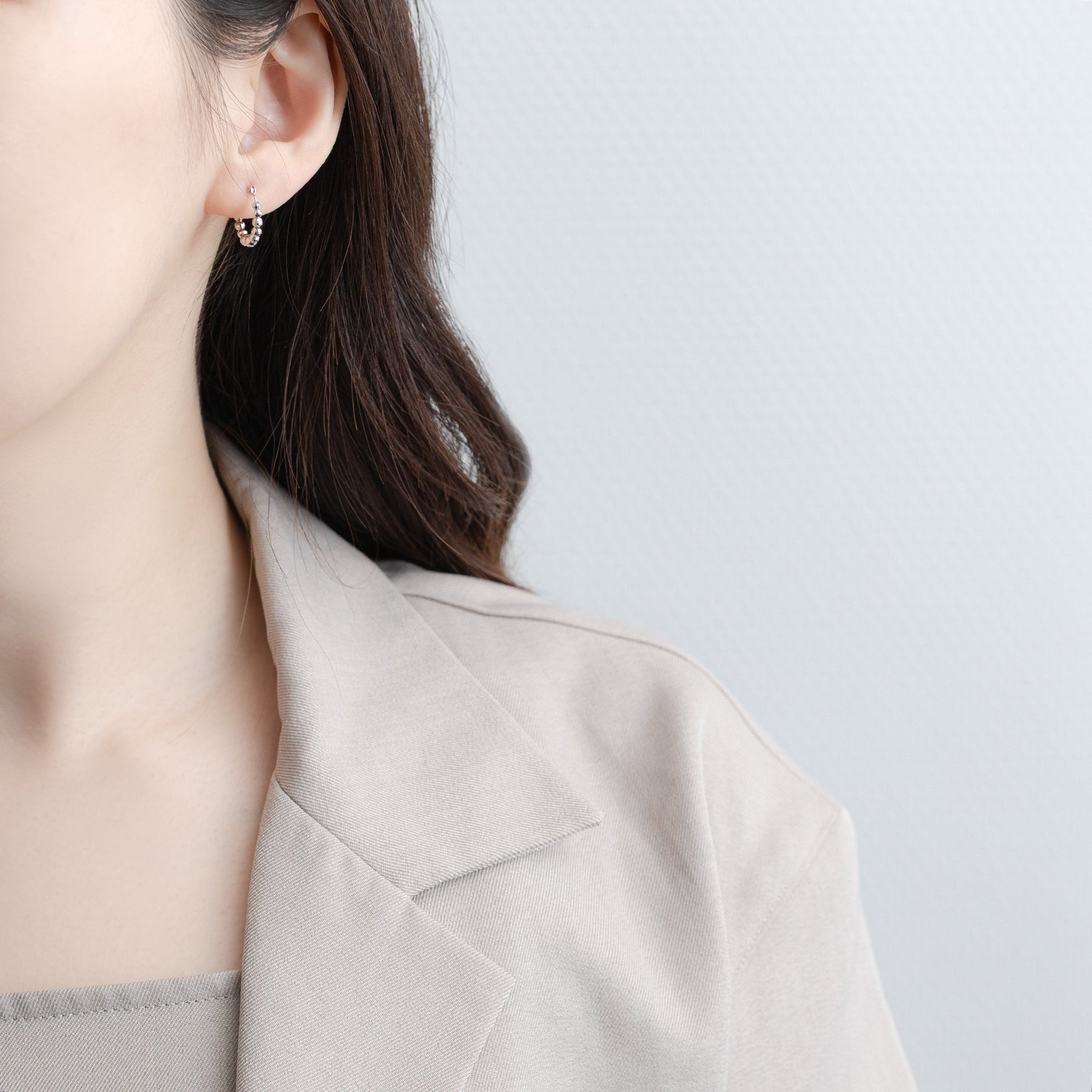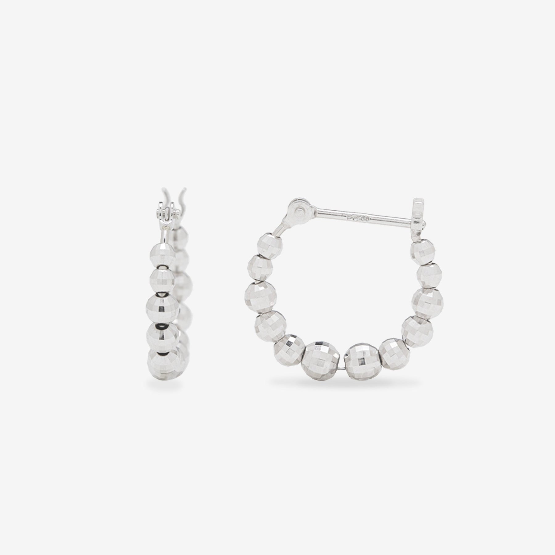 繊細に磨き上げられたミラーボールがフープに沿って美しく並び、耳元に上品で洗練された印象を与えます。