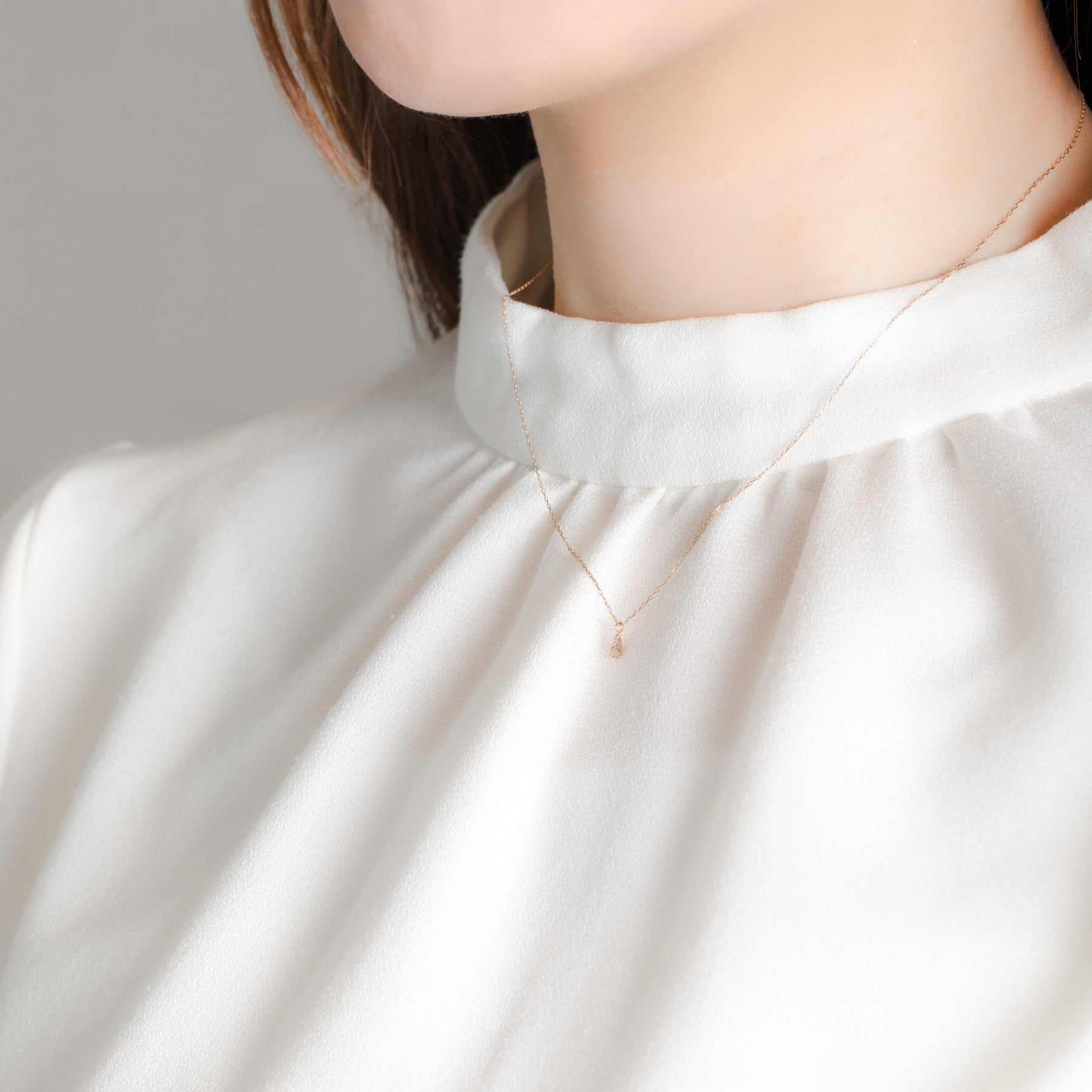 しずく型のフォルムが美しいダイヤモンドを一粒あしらったイエローゴールドのネックレス。