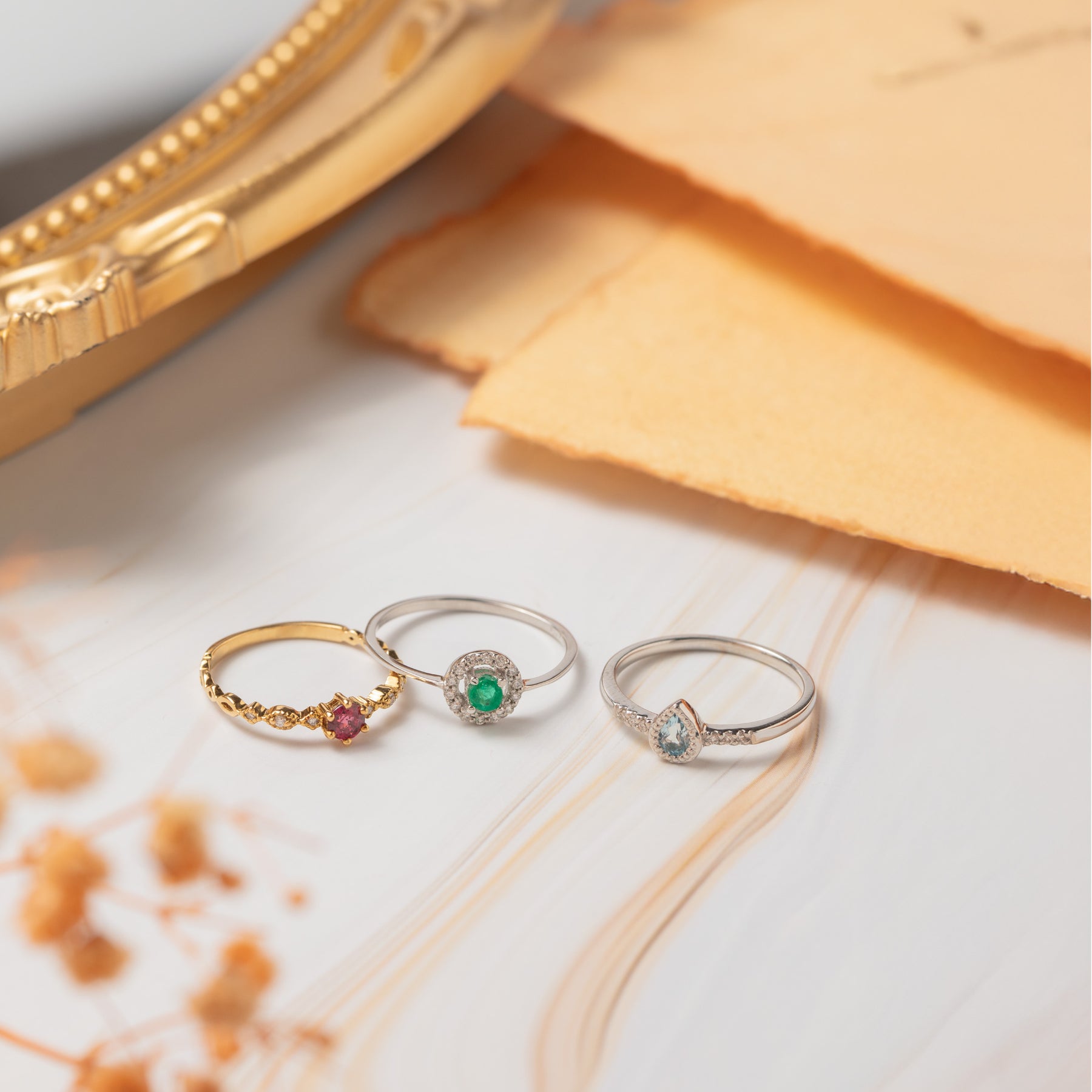 【Colors】深みのあるグリーンが美しいエメラルドをセットした、エレガントなプラチナのリング。宝石の静かな輝きが指先に落ち着いた彩りを添え、澄んだ存在感を放ちます。繊細なつくりが際立つデザインは、手元をすっきりと見せながら、どんな装いにも自然に馴染む洗練された仕上がり。日常のスタイルにはさりげない上品さを、特別なシーンには華やぎを添えてくれます。タイムレスな佇まいで、長く寄り添ってくれるリングです。エメラルドは5月の誕生石です。石言葉は「幸運」「幸福」。神秘的な輝きを放つエメラルドが幸運をもたらしてくれます。また、愛の力が強く恋愛成就に効果があると言われています。【ATTENTION】※熱や紫外線、湿度の影響により変色や変質、劣化の恐れがございます。ご使用後は柔らかな布で汚れを拭き取ってから、直射日光の当たらない場所での保管をお願いいたします。※天然石は素材の特性により、色や形、風合いなどが画像と多少異なる場合がございます。また、多少のインクルージョンやクラックがある場合がございます。予めご了承ください。※天然石は他の宝石と比べて柔らかく傷がつきやすいため、衝撃や摩擦にご注意ください。また、他のジュエリーと触れないように保管してください。※強い力を加えると変形の原因になりますので、お取り扱いにはご注意ください。