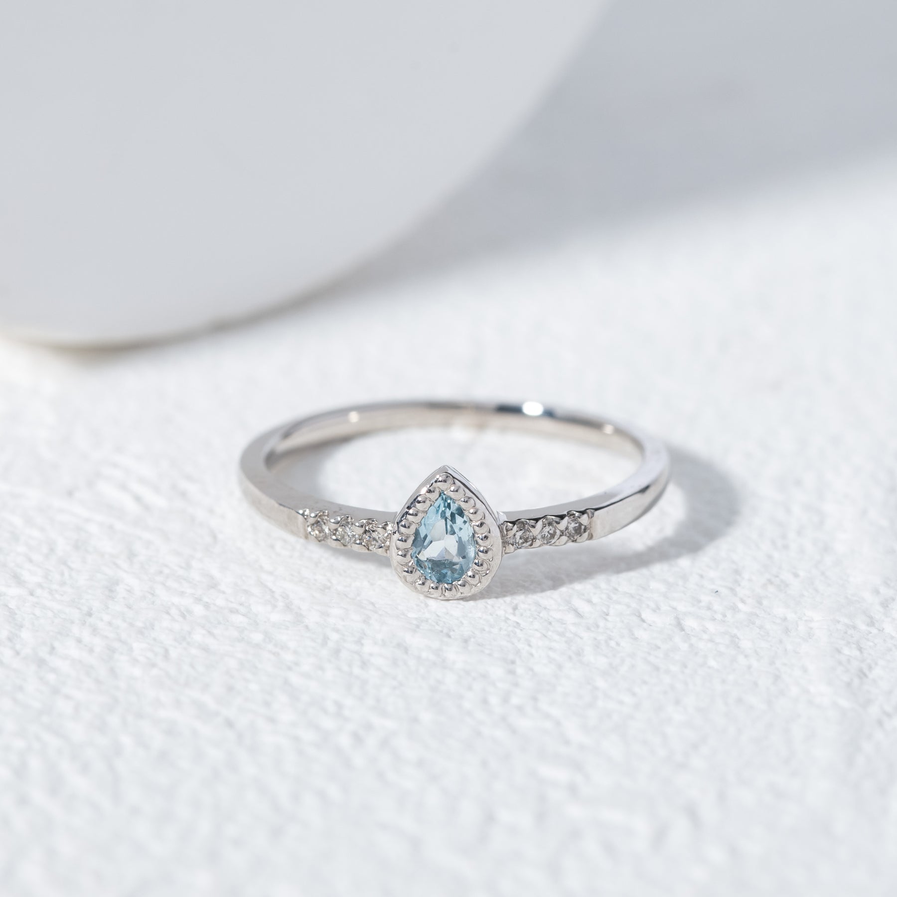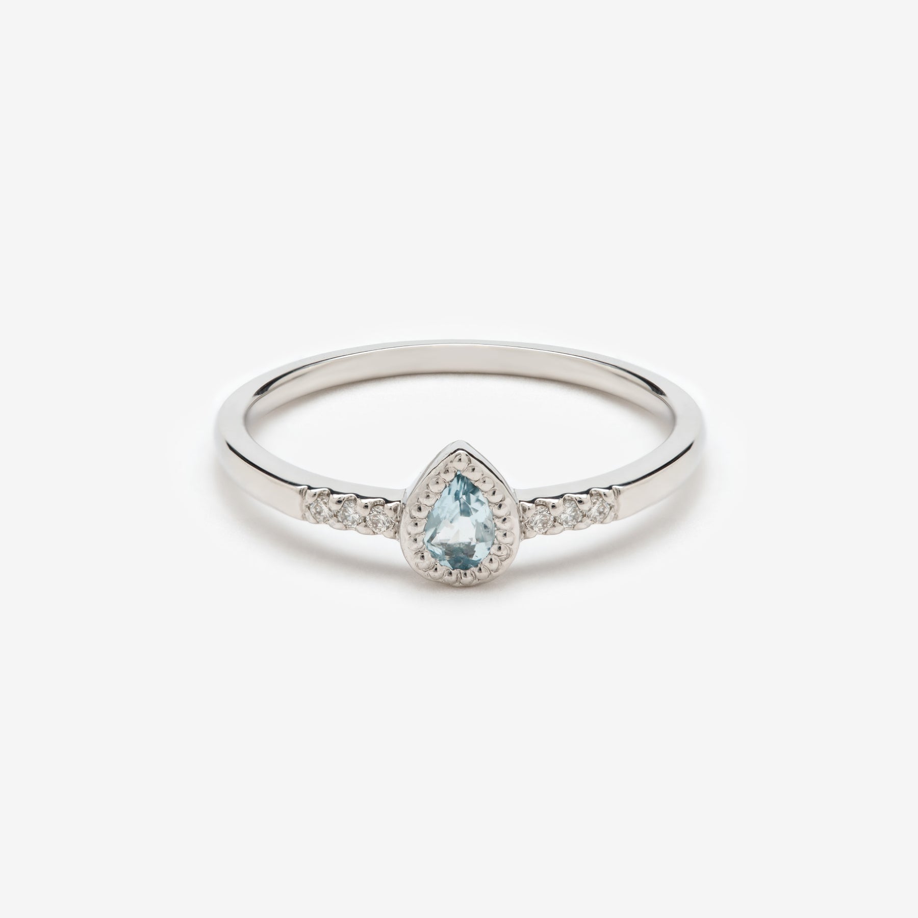 【Colors】しずくのようにみずみずしいアクアマリンをセットした、エレガントなプラチナのリング。透明感のあるやさしいブルーが指先に澄んだ輝きを添え、凛とした存在感を放ちます。繊細なつくりが際立つデザインは、手元にすっきりとした印象を与えながら、どんな装いにもすっと馴染む仕上がり。日常使いはもちろん、特別なシーンにも上品なアクセントを添えてくれます。長く愛用したくなる洗練された佇まいが魅力の、タイムレスなリングです。アクアマリンは3月の誕生石です。石言葉は「沈着」「勇敢」。ラテン語で「海の水」という意味のアクアマリン。海のパワーから穏やかな安らぎと癒しをもたらしてくれます。別名“天使の石”と呼ばれ、美しい若さと幸せな喜びを象徴するとされています。【ATTENTION】※熱や紫外線、湿度の影響により変色や変質、劣化の恐れがございます。ご使用後は柔らかな布で汚れを拭き取ってから、直射日光の当たらない場所での保管をお願いいたします。※天然石は素材の特性により、色や形、風合いなどが画像と多少異なる場合がございます。また、多少のインクルージョンやクラックがある場合がございます。予めご了承ください。※天然石は他の宝石と比べて柔らかく傷がつきやすいため、衝撃や摩擦にご注意ください。また、他のジュエリーと触れないように保管してください。※強い力を加えると変形の原因になりますので、お取り扱いにはご注意ください。