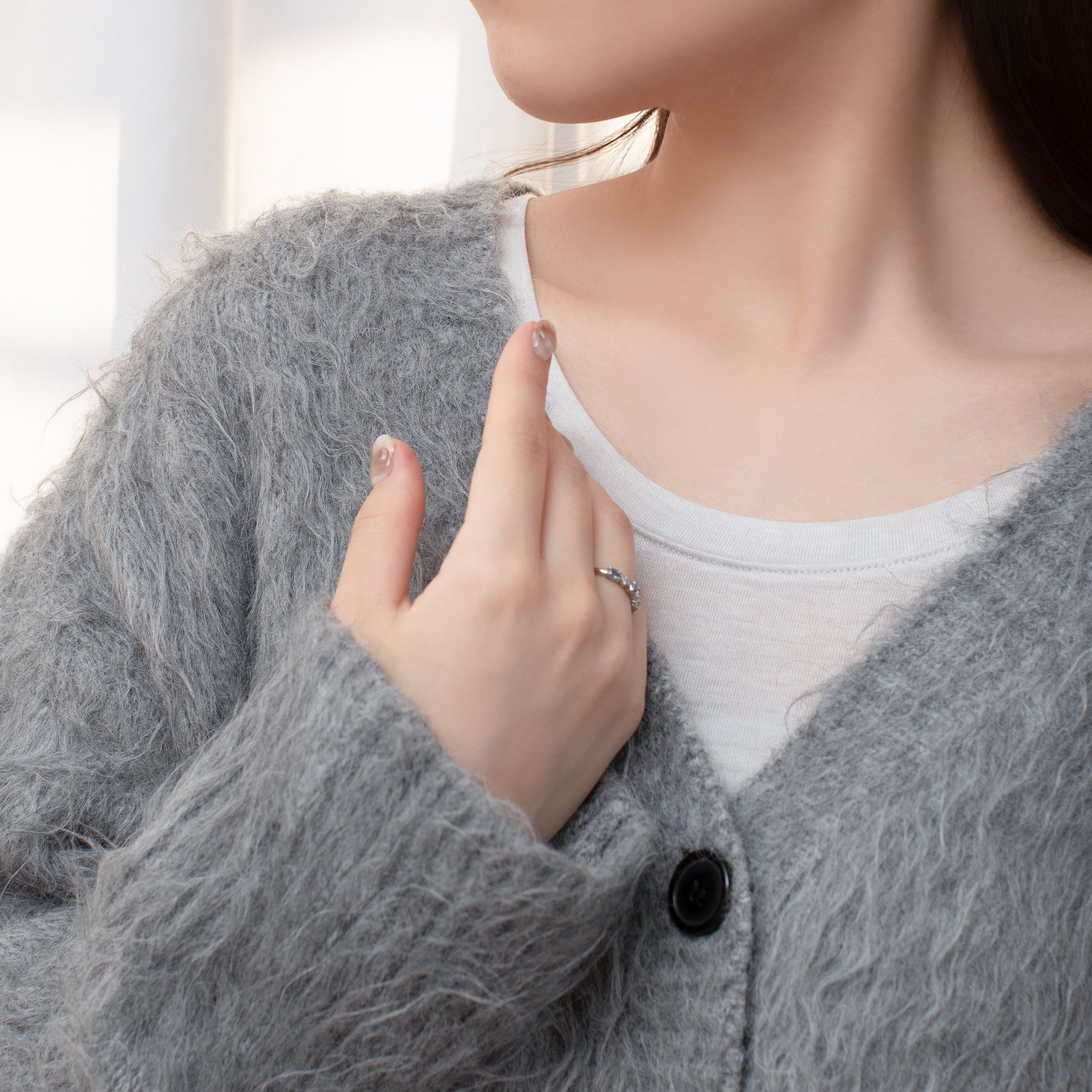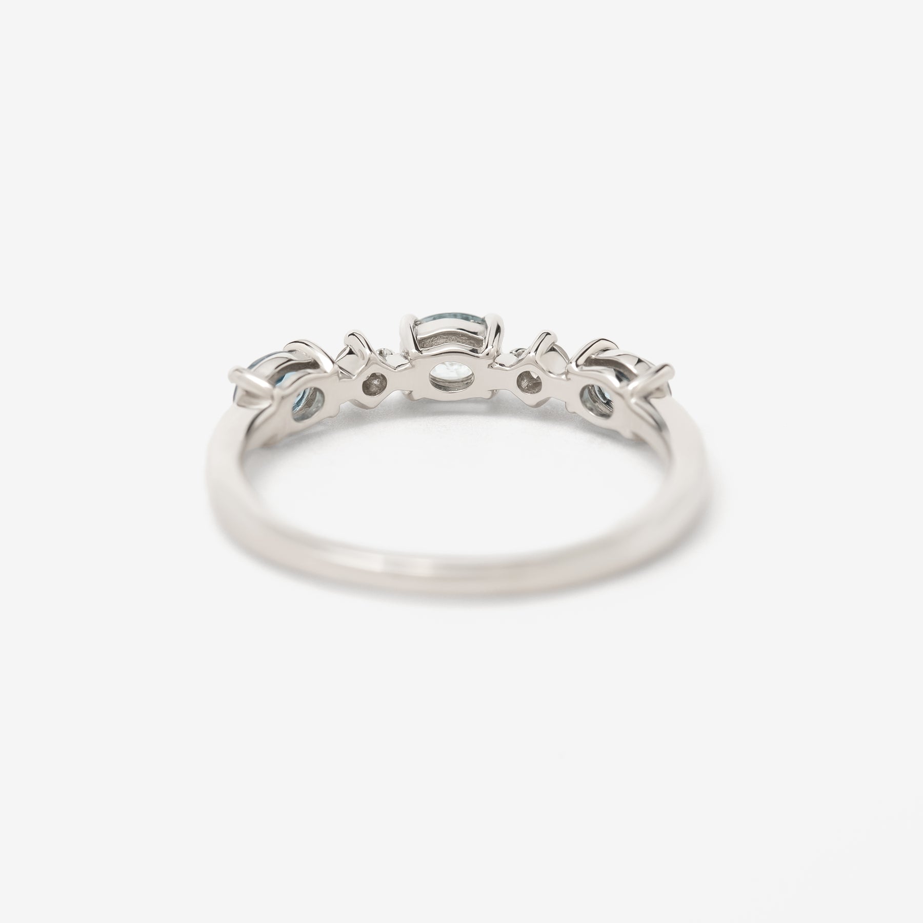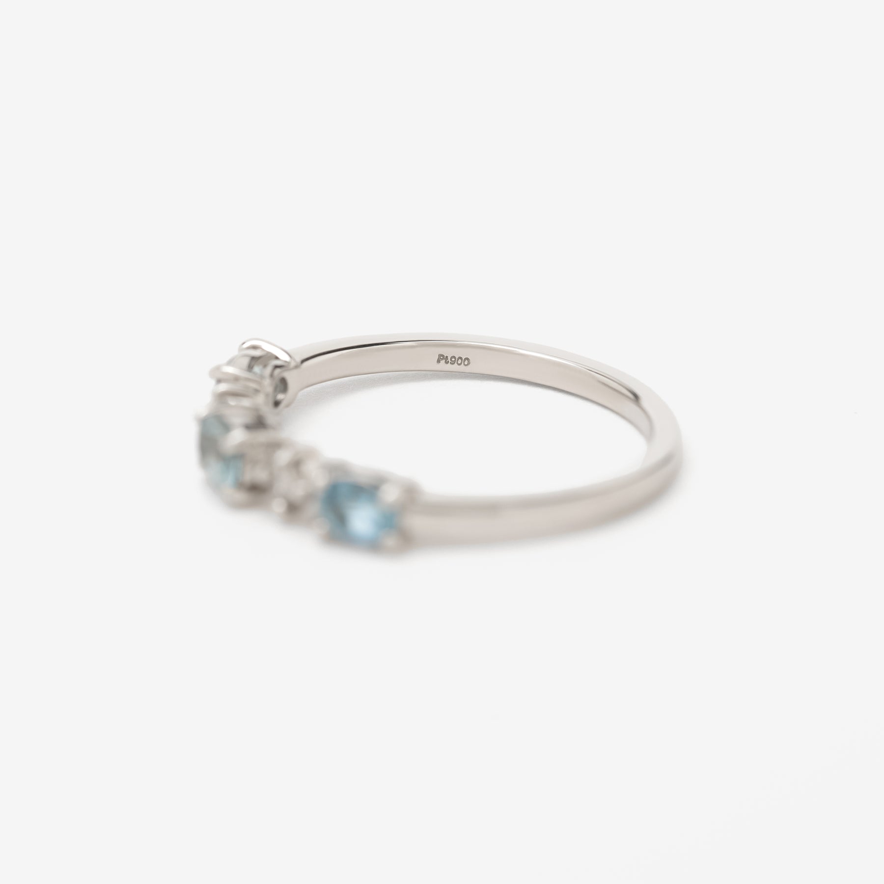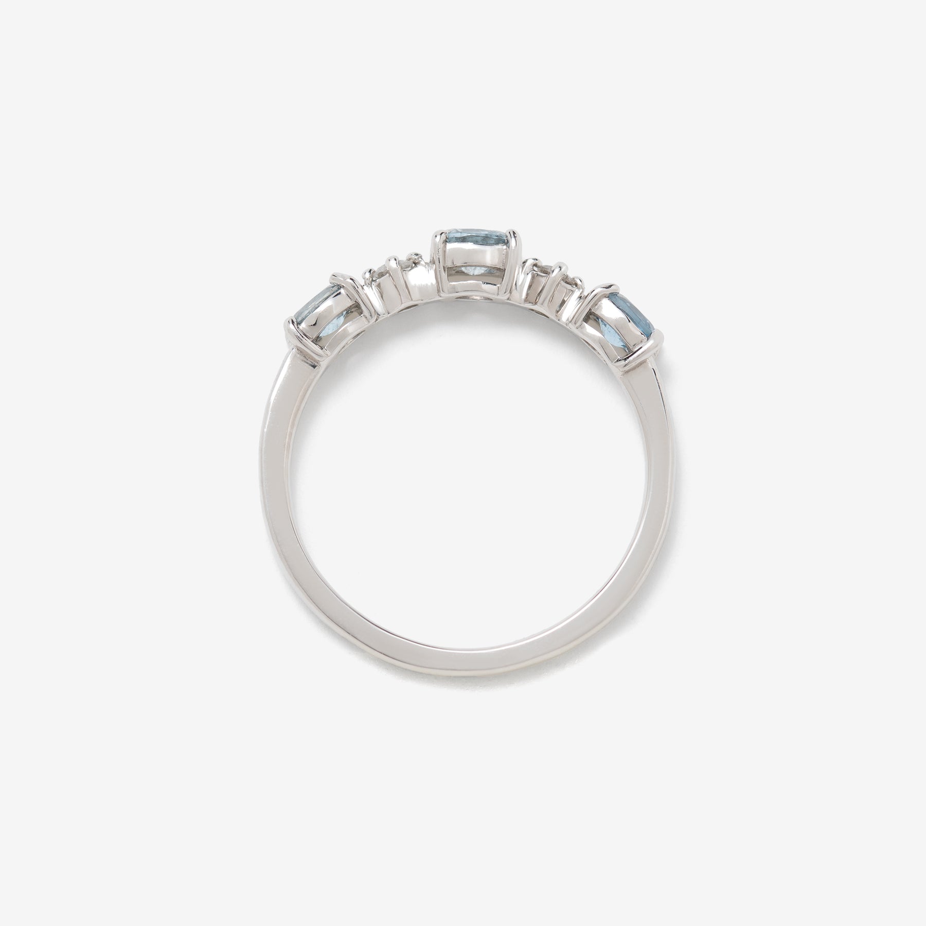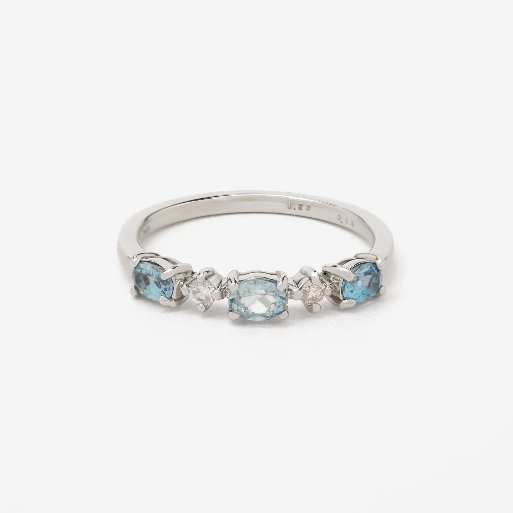 【Colors】みずみずしいブルーが魅力のアクアマリンを3石並べた、華やかなプラチナリング。透明感のある輝きが重なり合い、指先に爽やかなきらめきをもたらします。間にあしらわれたダイヤモンドが上品なアクセントとなり、軽やかで女性らしい印象に。程よいボリューム感がありながらも、すっきりとしたシルエットで日常使いにも取り入れやすいデザインです。手元にやさしい彩りを添える、上質感あふれるジュエリーです。アクアマリンは3月の誕生石です。石言葉は「沈着」「勇敢」。ラテン語で「海の水」という意味のアクアマリン。海のパワーから穏やかな安らぎと癒しをもたらしてくれます。別名“天使の石”と呼ばれ、美しい若さと幸せな喜びを象徴するとされています。【ATTENTION】※熱や紫外線、湿度の影響により変色や変質、劣化の恐れがございます。ご使用後は柔らかな布で汚れを拭き取ってから、直射日光の当たらない場所での保管をお願いいたします。※天然石は素材の特性により、色や形、風合いなどが画像と多少異なる場合がございます。また、多少のインクルージョンやクラックがある場合がございます。予めご了承ください。※天然石は他の宝石と比べて柔らかく傷がつきやすいため、衝撃や摩擦にご注意ください。また、他のジュエリーと触れないように保管してください。※強い力を加えると変形の原因になりますので、お取り扱いにはご注意ください。