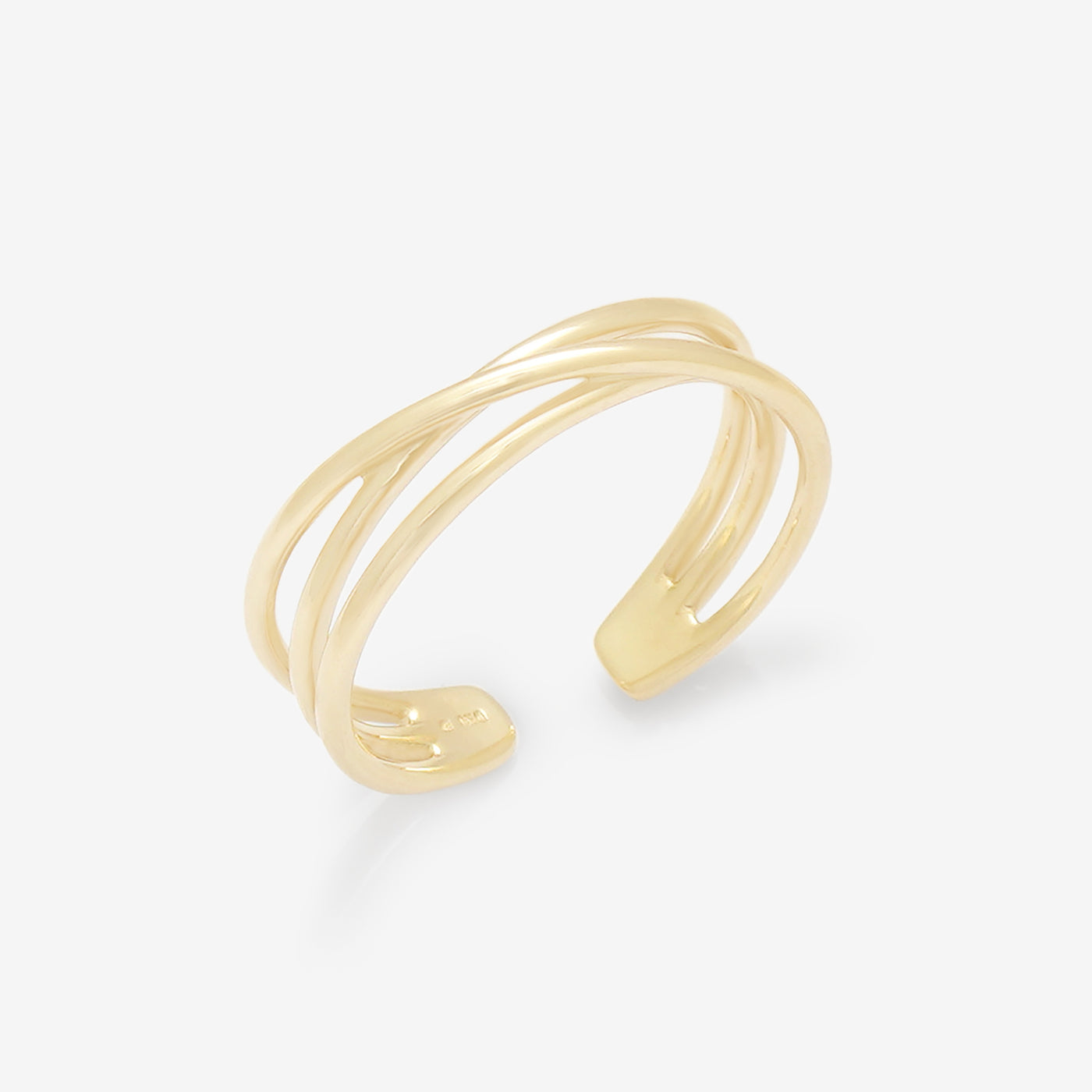 交差するラインが繊細で立体的な美しさを描く、イエローゴールドの2WAYジュエリー。イヤーカフとして軽やかに耳元を彩り、ピンキーリングとして指先にスタイリッシュな輝きを演出。ミニマルでありながらも存在感のあるデザインが、洗練されたラインの美しさを際立たせます。程よいボリューム感と抜け感が絶妙で、どんなスタイルにも自然に溶け込みます。【ATTENTION】※熱や紫外線、湿度の影響により変色や変質、劣化の恐れがございます。ご使用後は柔らかな布で汚れを拭き取ってから、直射日光の当たらない場所での保管をお願いいたします。※強い力を加えると変形の原因になりますので、お取り扱いにはご注意ください。