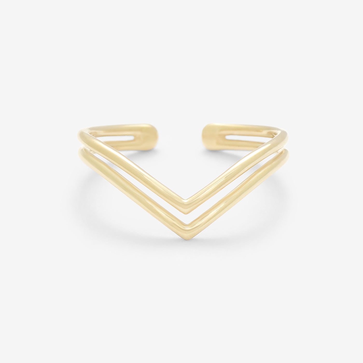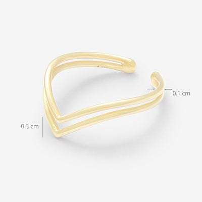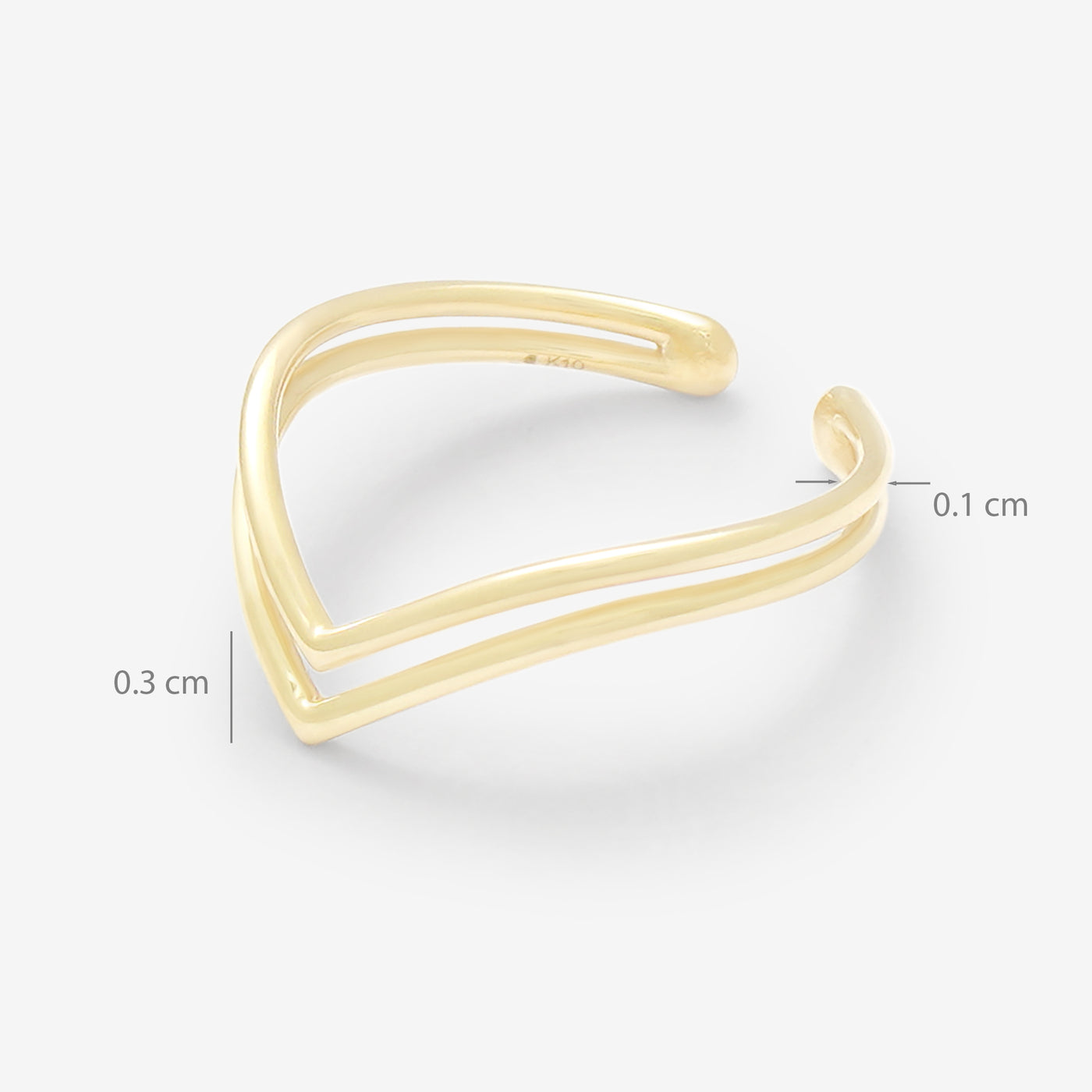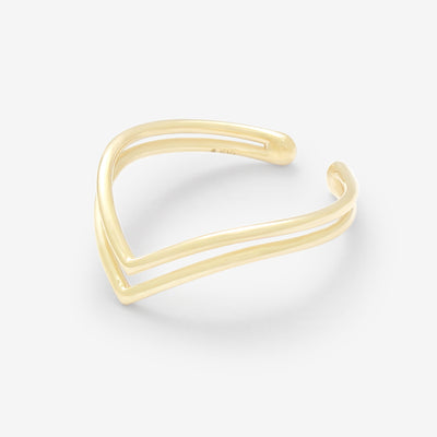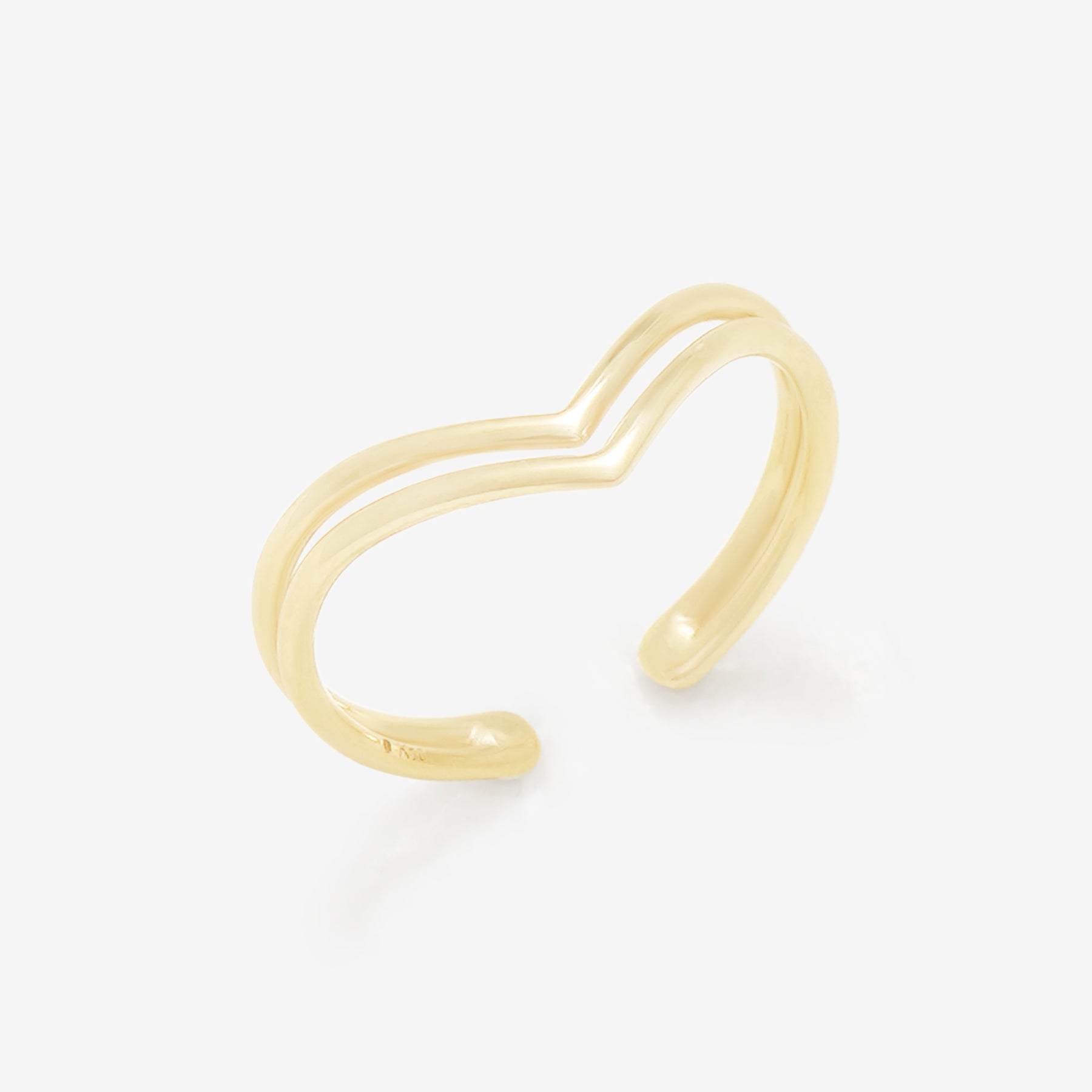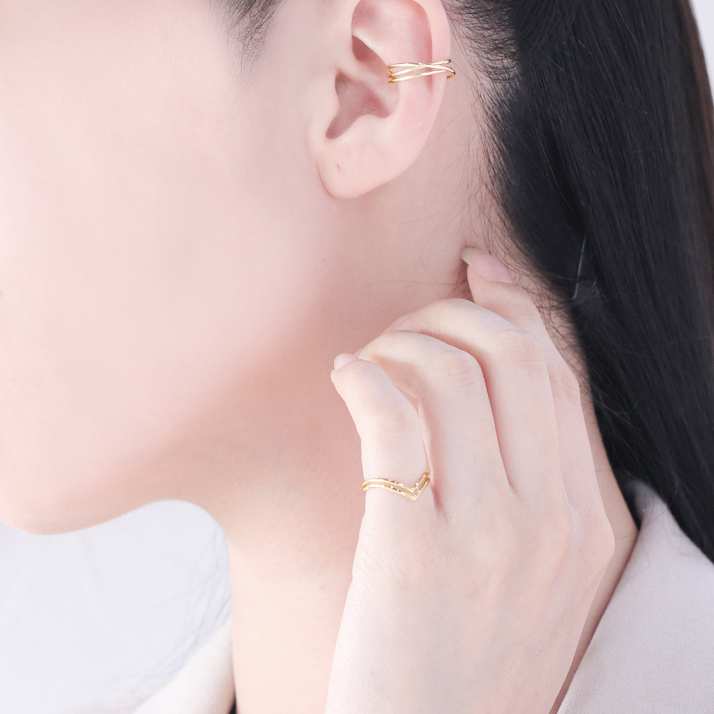 イエローゴールドのV字のラインが繊細で美しい2WAYジュエリー。イヤーカフとして軽やかに耳元を彩り、ピンキーリングとして指先にスタイリッシュな輝きを演出。ミニマルでありながらも存在感のあるデザインが、洗練されたラインの美しさを際立たせます。程よいボリューム感と抜け感が絶妙で、どんなスタイルにも自然に溶け込みます。【ATTENTION】※熱や紫外線、湿度の影響により変色や変質、劣化の恐れがございます。ご使用後は柔らかな布で汚れを拭き取ってから、直射日光の当たらない場所での保管をお願いいたします。※強い力を加えると変形の原因になりますので、お取り扱いにはご注意ください。