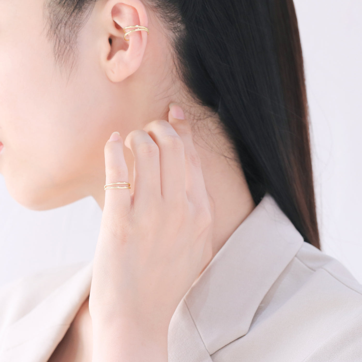 イエローゴールドのラインが繊細で美しい2WAYジュエリー。イヤーカフとして軽やかに耳元を彩り、ピンキーリングとして指先にスタイリッシュな輝きを演出。ミニマルでありながらも存在感のあるデザインが、洗練されたラインの美しさを際立たせます。程よいボリューム感と抜け感が絶妙で、どんなスタイルにも自然に溶け込みます。【ATTENTION】※熱や紫外線、湿度の影響により変色や変質、劣化の恐れがございます。ご使用後は柔らかな布で汚れを拭き取ってから、直射日光の当たらない場所での保管をお願いいたします。※強い力を加えると変形の原因になりますので、お取り扱いにはご注意ください。