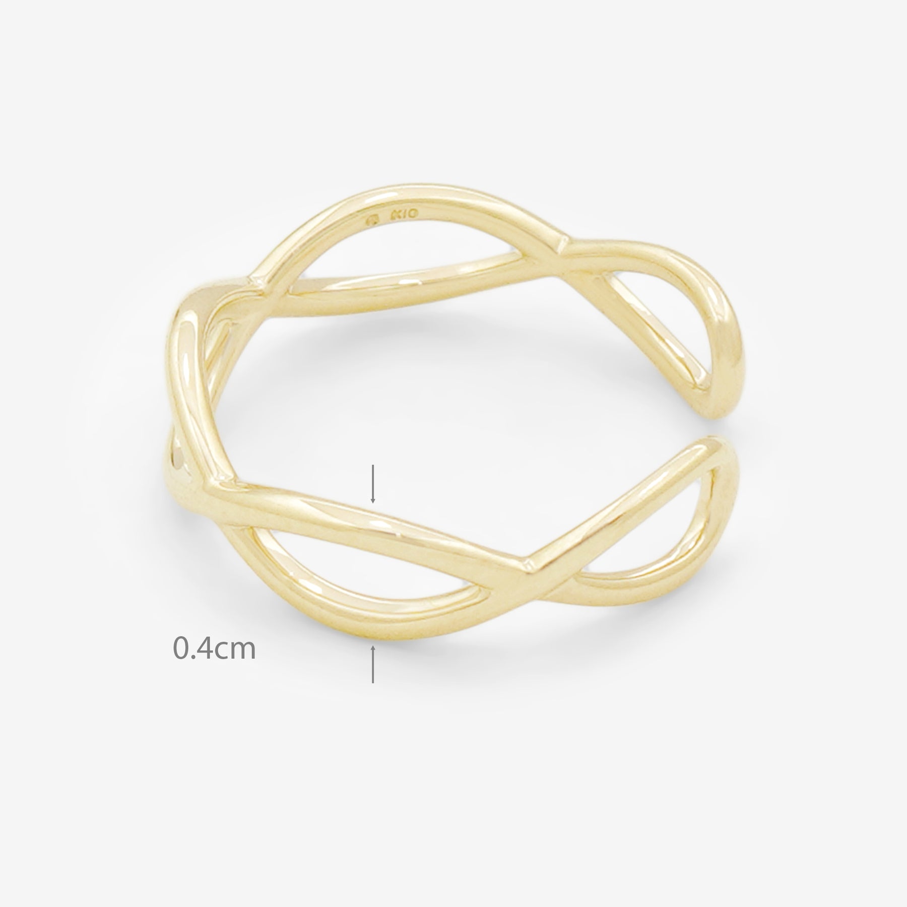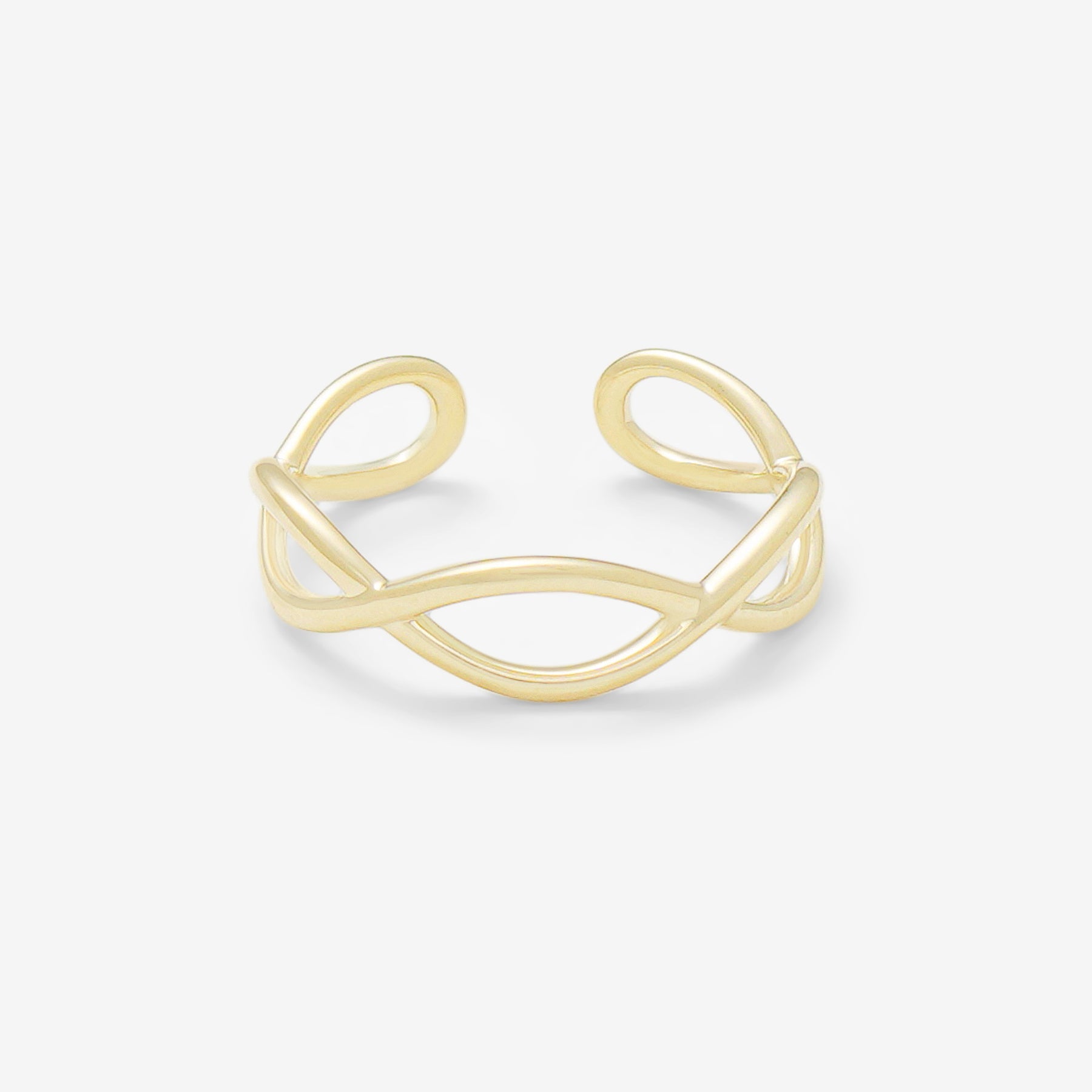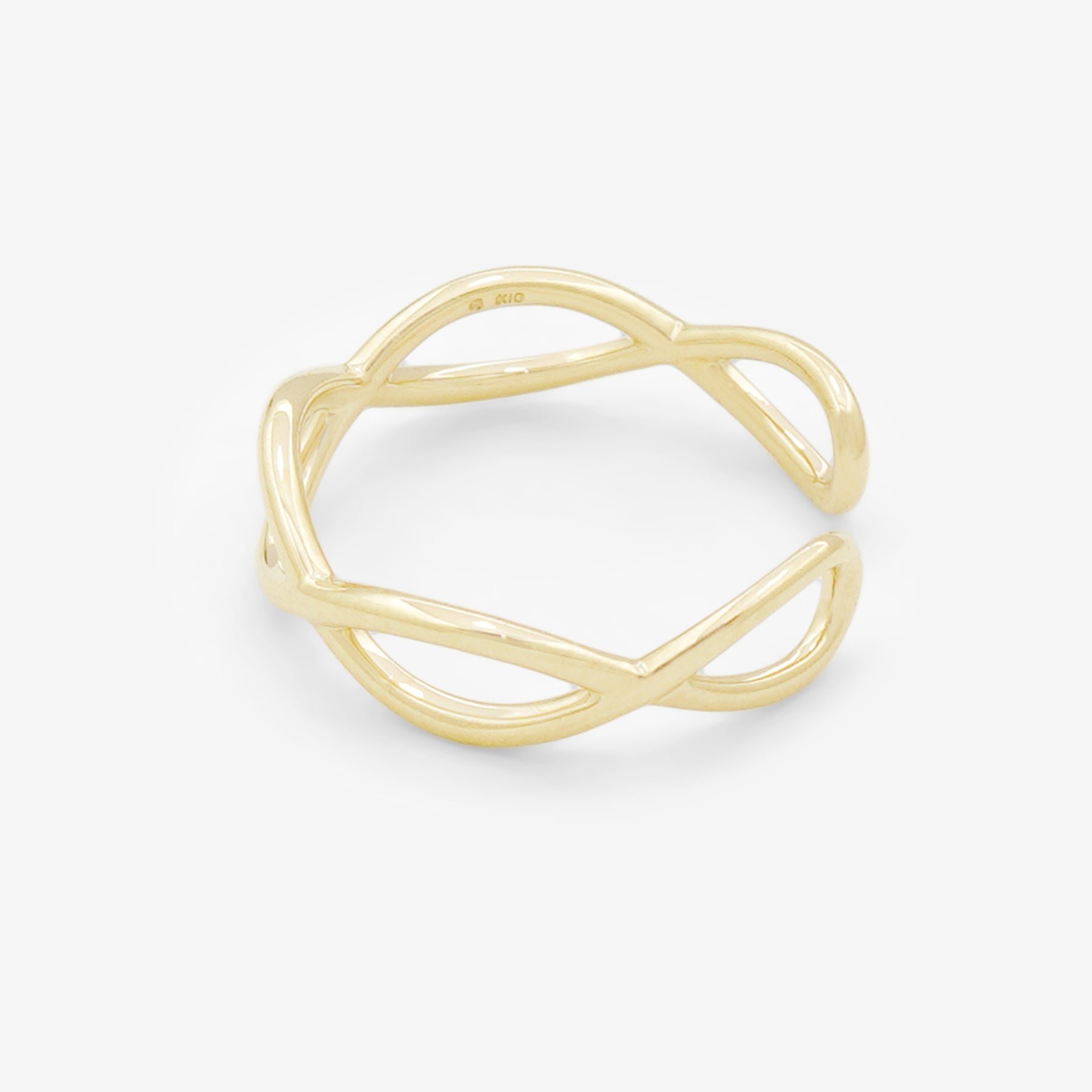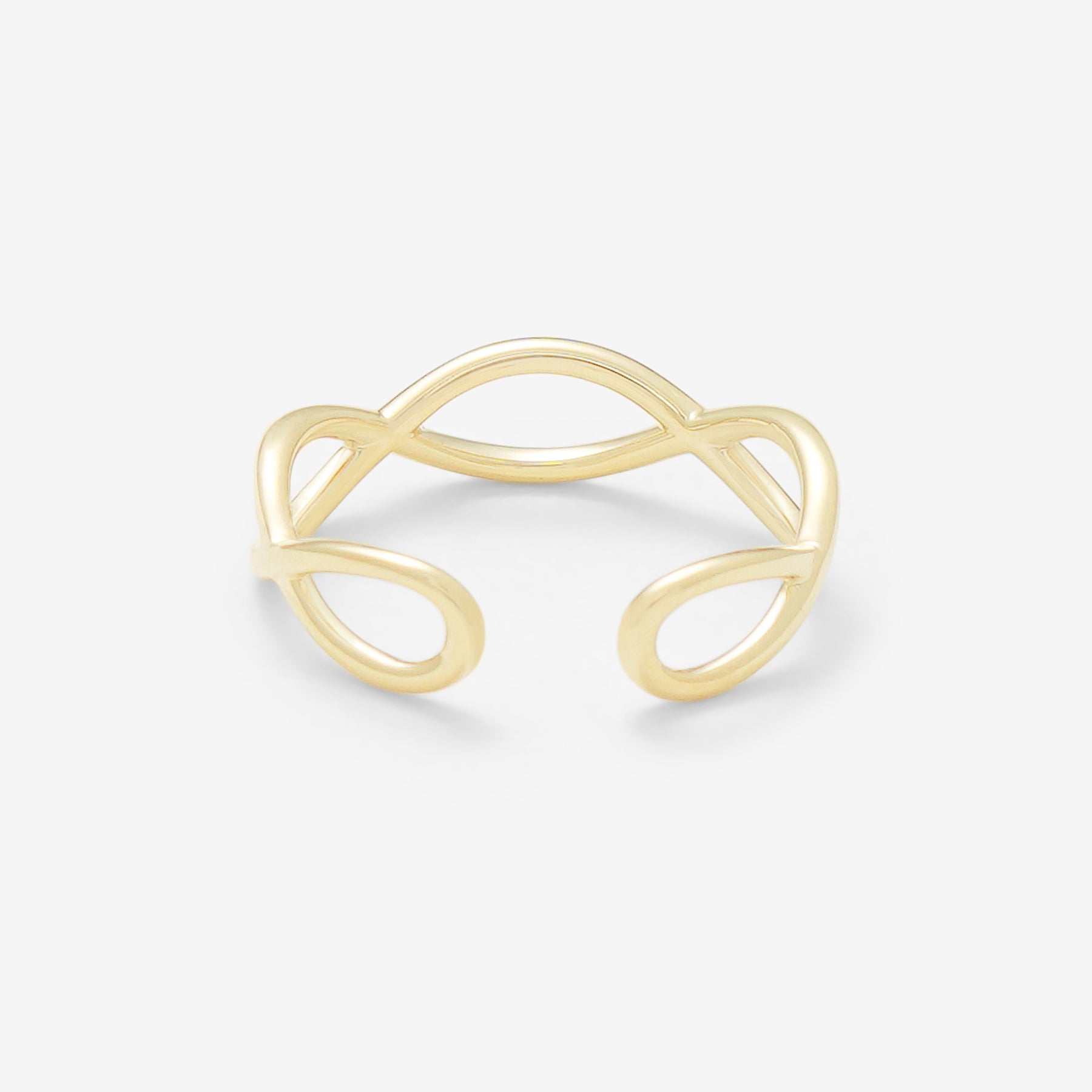 交差するラインが繊細で立体的な美しさを描く、イエローゴールドの2WAYジュエリー。イヤーカフとして軽やかに耳元を彩り、ピンキーリングとして指先にスタイリッシュな輝きを演出。ミニマルでありながらも存在感のあるデザインが、洗練されたラインの美しさを際立たせます。程よいボリューム感と抜け感が絶妙で、どんなスタイルにも自然に溶け込みます。【ATTENTION】※熱や紫外線、湿度の影響により変色や変質、劣化の恐れがございます。ご使用後は柔らかな布で汚れを拭き取ってから、直射日光の当たらない場所での保管をお願いいたします。※強い力を加えると変形の原因になりますので、お取り扱いにはご注意ください。