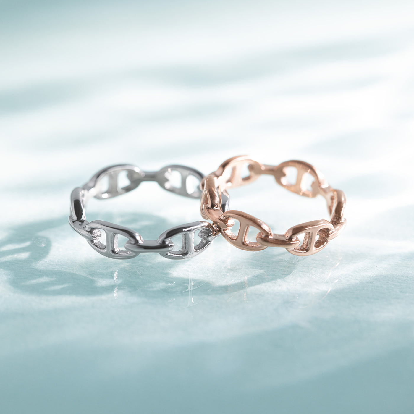 【WEB限定商品】いつでもつけやすい素材とユニークなデザインが魅力のリング。アンカーチェーンをモチーフにしたリングは、大人の遊び心があり、ペアリングとしてもおすすめのデザインです。大人のカジュアルなスタイリングの仕上げにピッタリの、おしゃれ心を高めてくれる存在になりそうです。・サージカルステンレスステンレスの中でもアレルギー性の極めて低い医療用器具にも使用される316Lステンレス。汗や水、腐食や熱などにも強いため、錆びたり変色したりしにくい優れた特性を持つ素材です。※全ての方に金属アレルギー反応が出ないことを保証するものではございません。違和感を感じた場合はご使用を中止し、専門医にご相談ください。【ATTENTION】※熱や紫外線、湿度の影響により変色や変質、劣化の恐れがございます。ご使用後は柔らかな布で汚れを拭き取ってから、直射日光の当たらない場所での保管をお願いいたします。研磨剤入りの磨き布や洗浄液は使用しないようご注意ください。※ステンレスは非常に硬い金属です。リングが指から抜けなくなった場合、リングの切断が困難となります。圧迫感を感じた際には、すぐにリングを外してください。※素材の特性上、サイズ直し・修理はご対応いたしかねます。あらかじめご了承下さい。