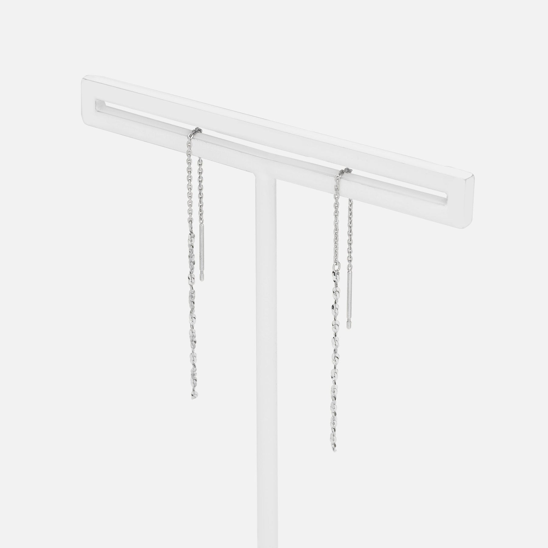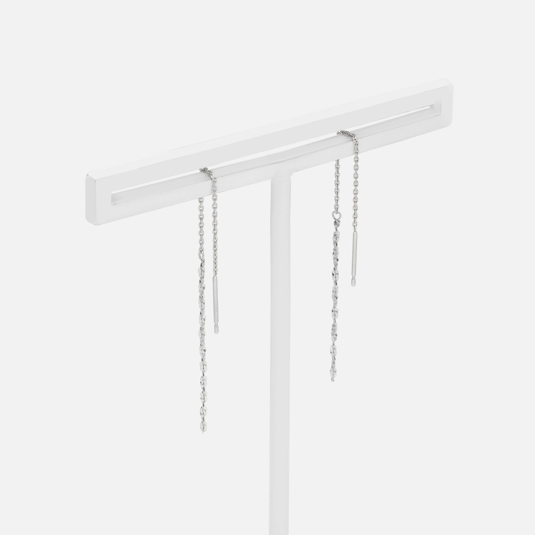【FOR EARS】ホワイトゴールドのきらめきが美しいアメリカンピアス。動くたびに繊細に揺れ動くホワイトゴールドのチェーンが、上品な印象に。耳元のほどよいアクセントになり、魅力を引き出してくれそうなピアスです。【ATTENTION】※熱や紫外線、湿度の影響により変色や変質、劣化の恐れがございます。ご使用後は柔らかな布で汚れを拭き取ってから、直射日光の当たらない場所での保管をお願いいたします。※強い力を加えると変形の原因になりますので、お取り扱いにはご注意ください。