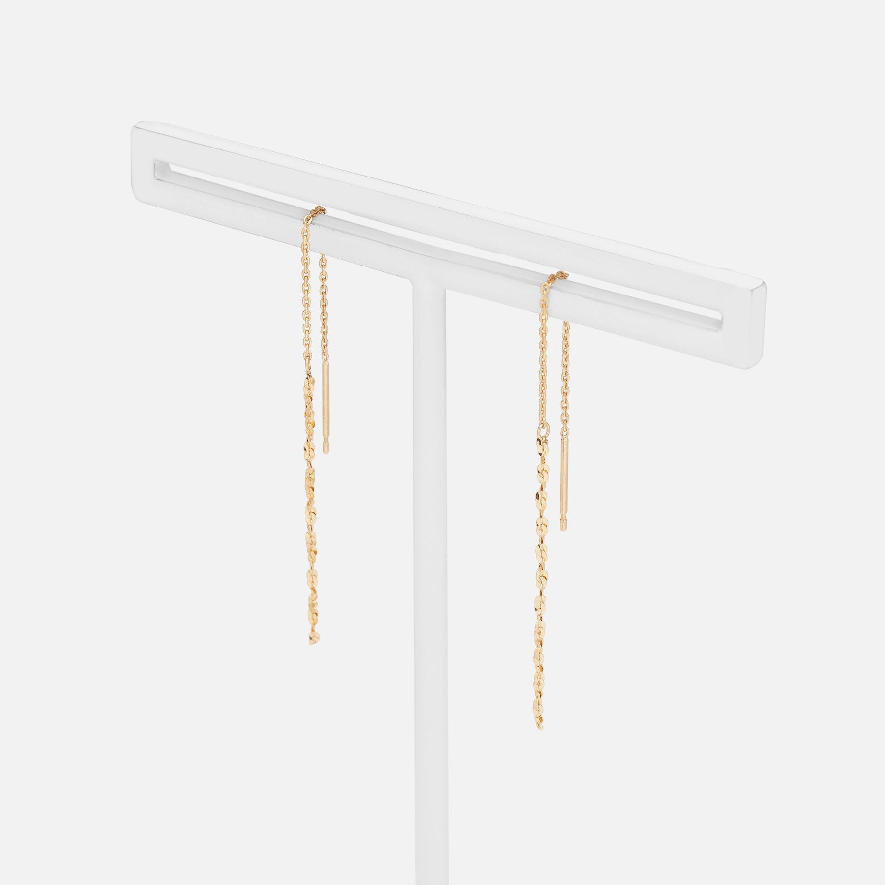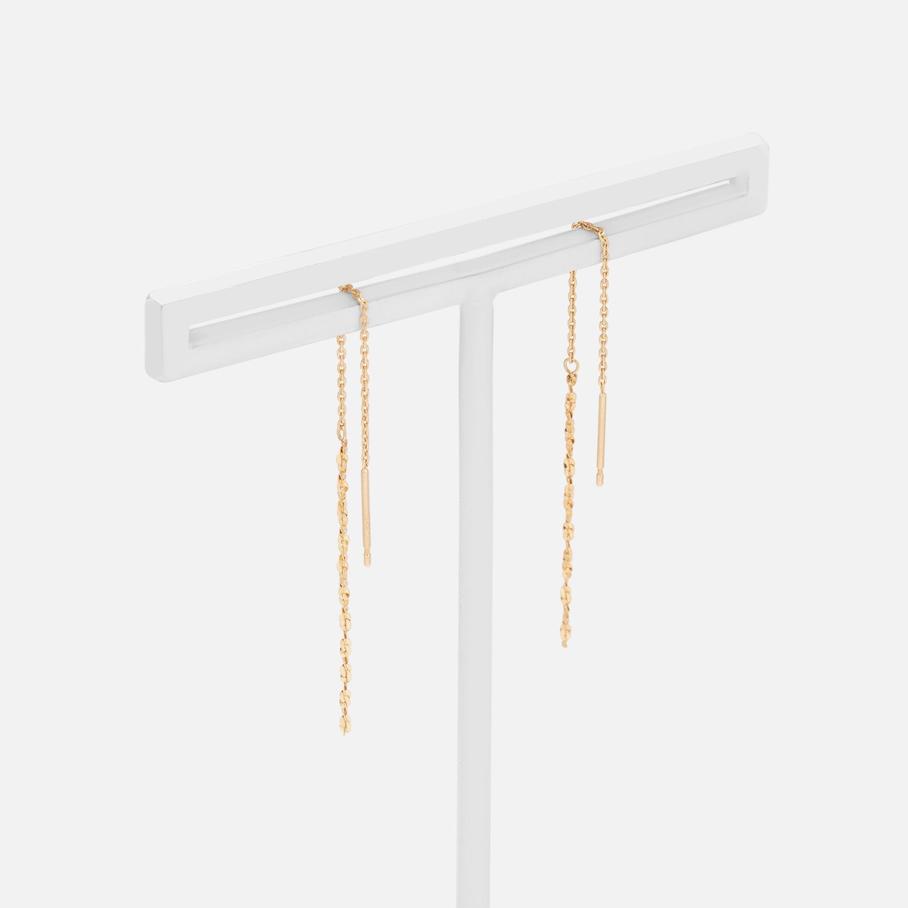 【FOR EARS】ピンクゴールドのきらめきが美しいアメリカンピアス。動くたびに繊細に揺れ動くピンクゴールドのチェーンが、優しい印象に。耳元のほどよいアクセントになり、魅力を引き出してくれそうなピアスです。【ATTENTION】※熱や紫外線、湿度の影響により変色や変質、劣化の恐れがございます。ご使用後は柔らかな布で汚れを拭き取ってから、直射日光の当たらない場所での保管をお願いいたします。※強い力を加えると変形の原因になりますので、お取り扱いにはご注意ください。