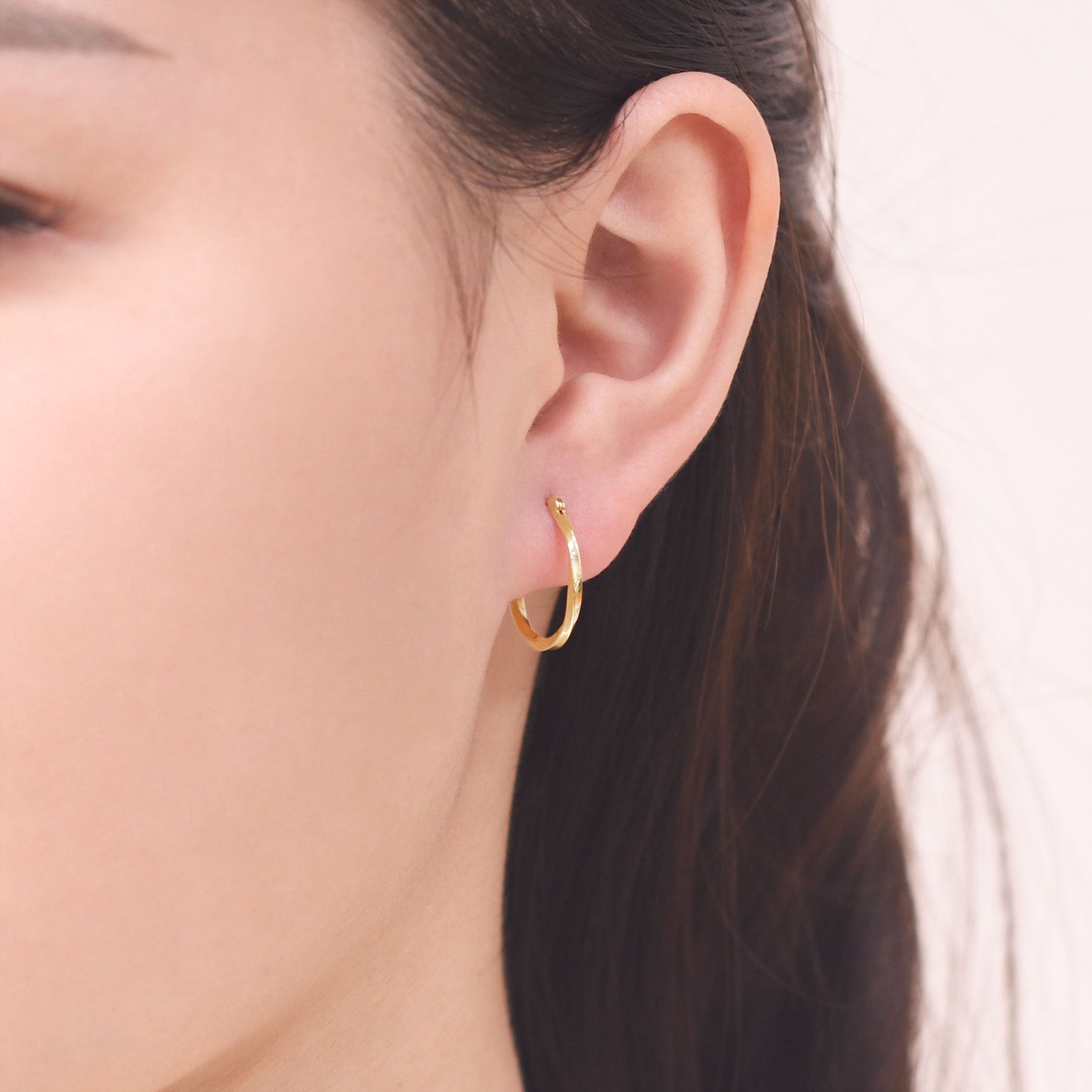 耳元の優しいアクセントになるイエローゴールドのフープピアス。