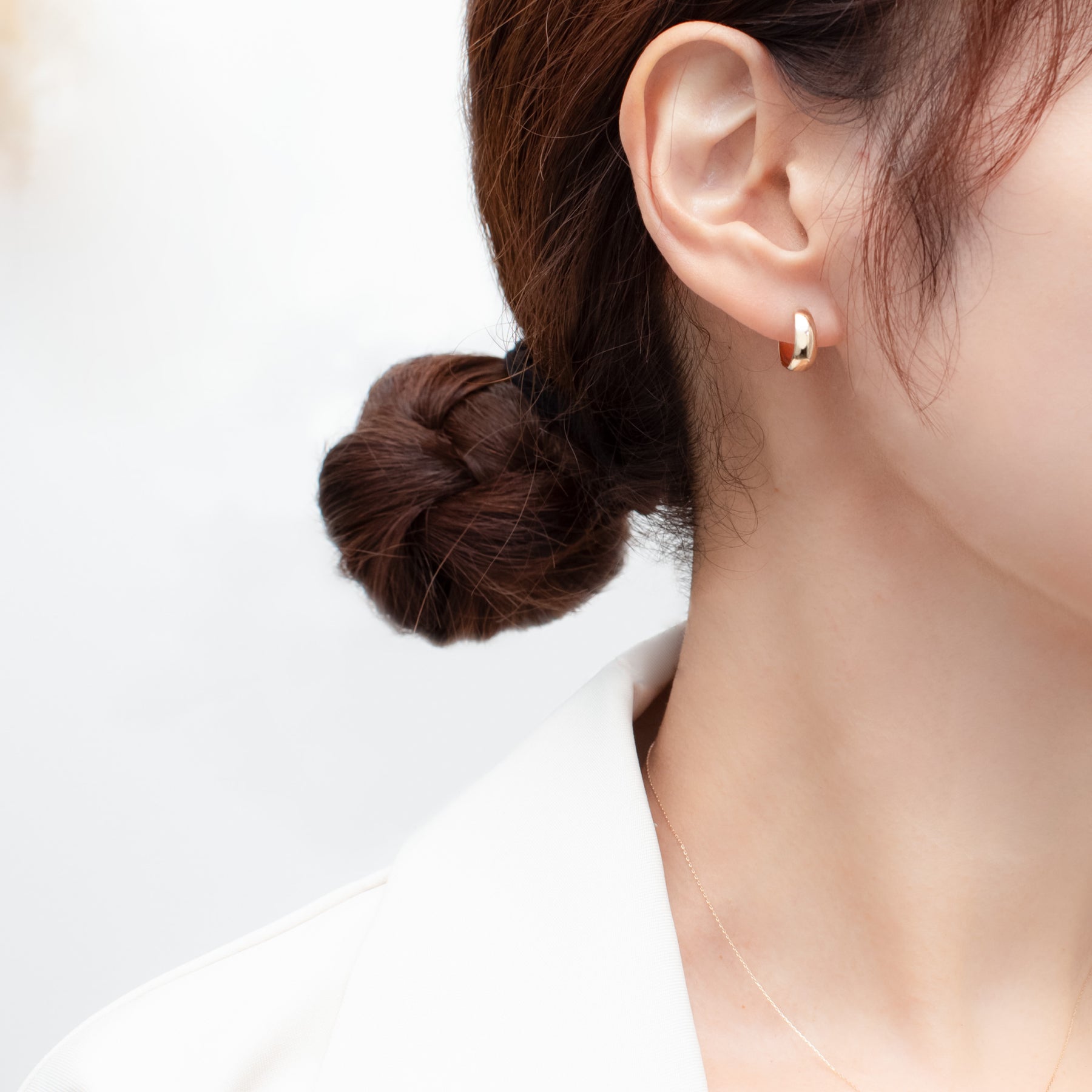 日常にさりげない輝きを添える、ふっくらとしたフォルムが魅力の月甲フープピアス。