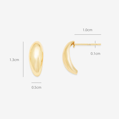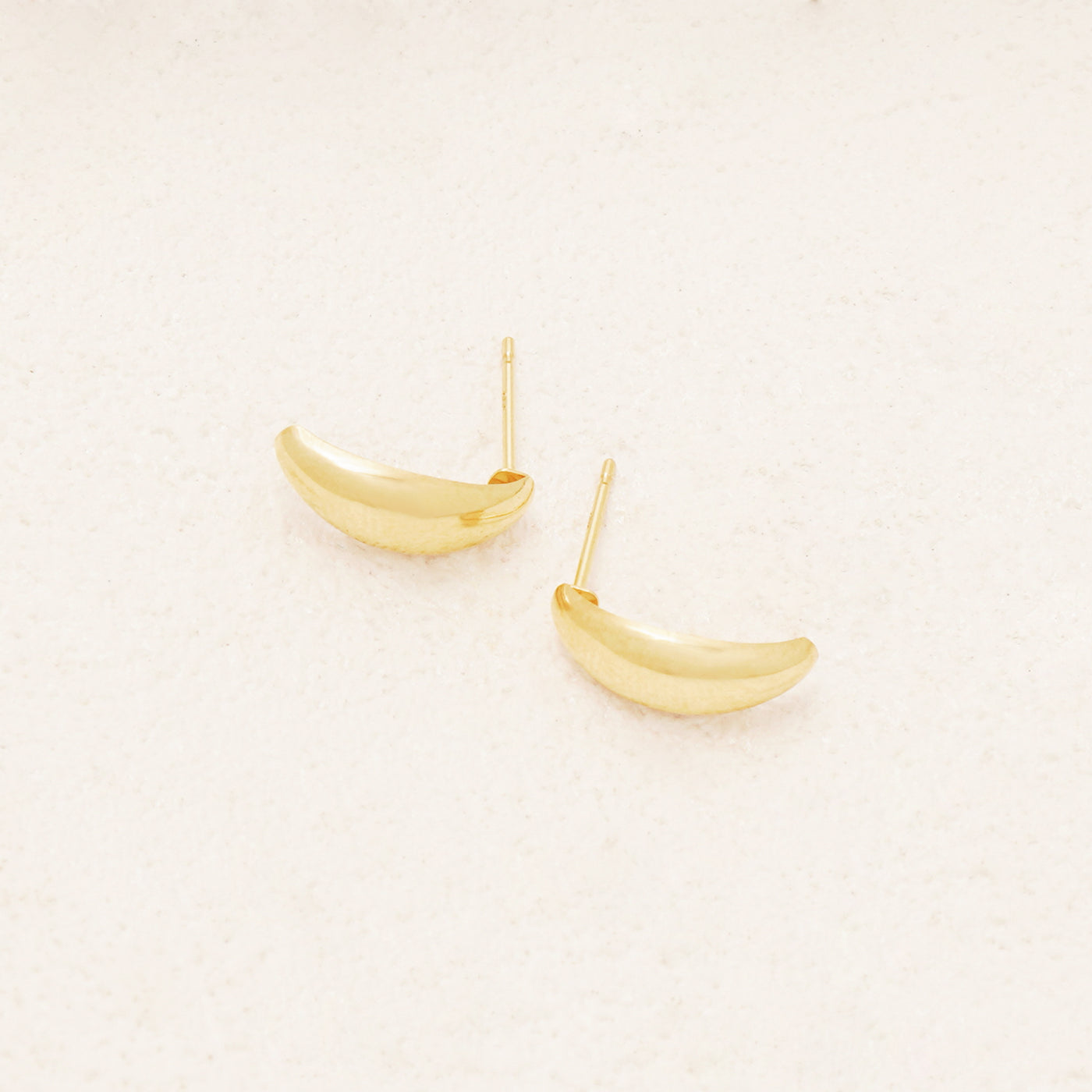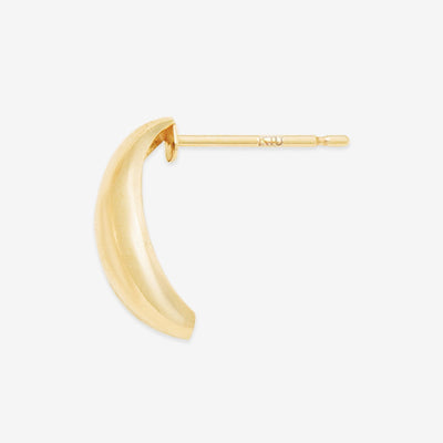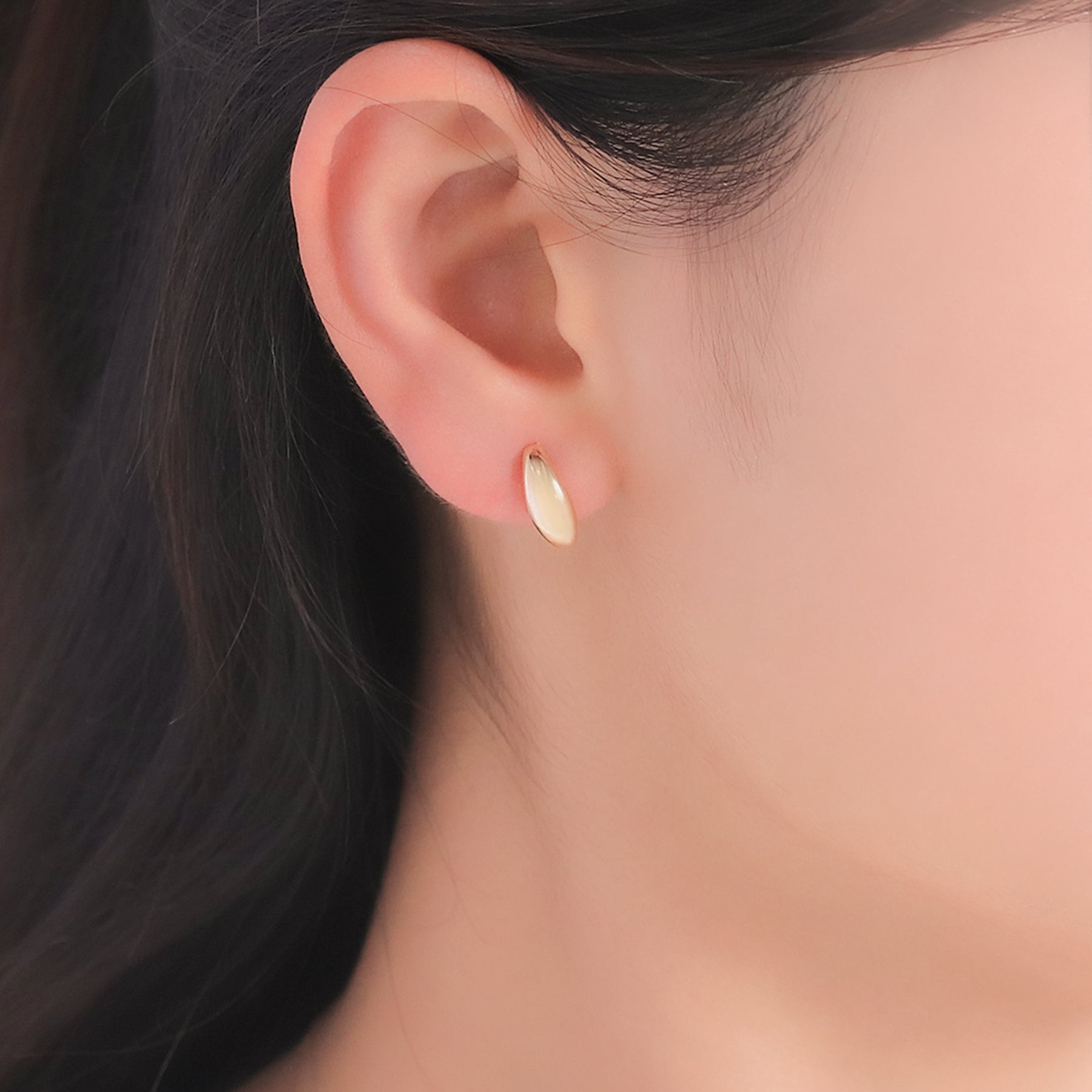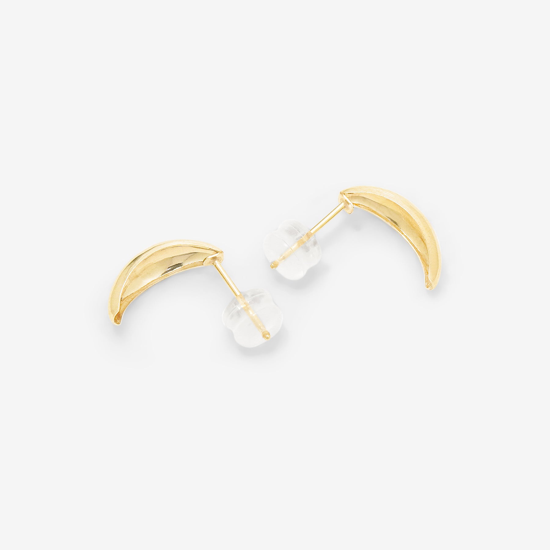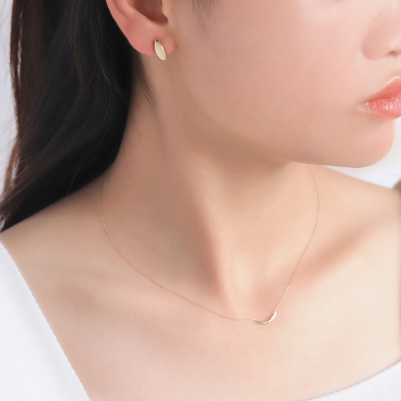 イエローゴールドの柔らかな色合いと立体感のある月甲デザインのピアスが、耳元に上品な華やかさをプラス。