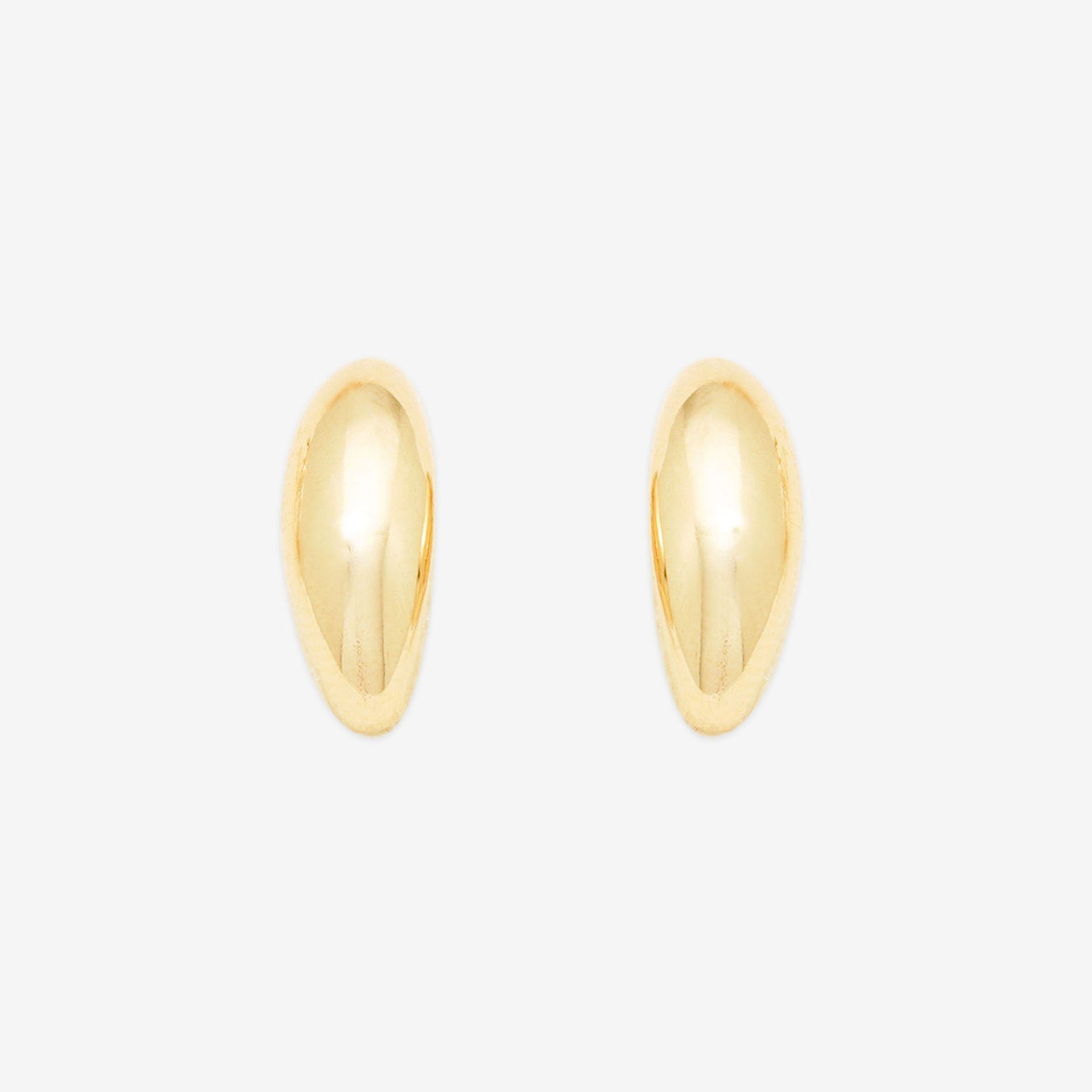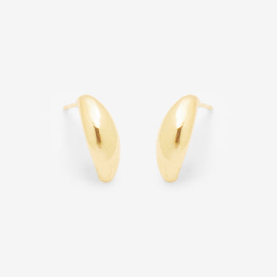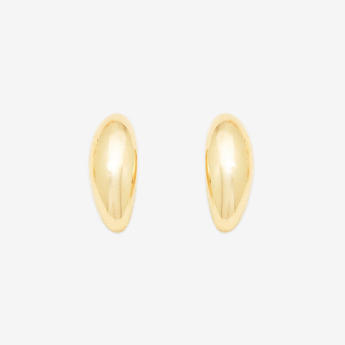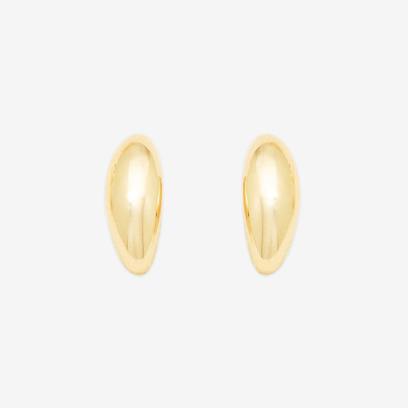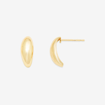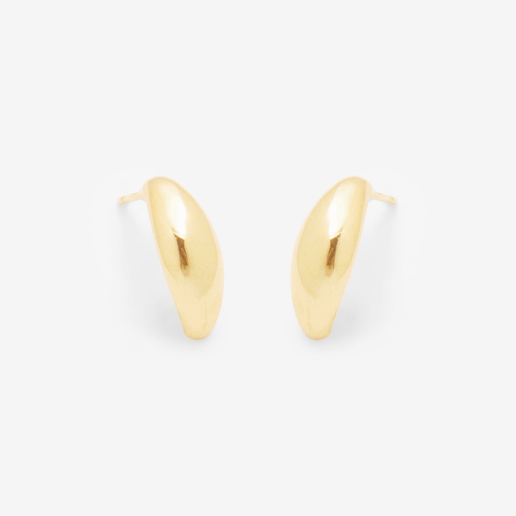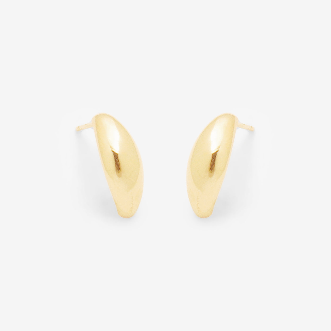 イエローゴールドの柔らかな色合いと立体感のある月甲デザインのピアスが、耳元に上品な華やかさをプラス。