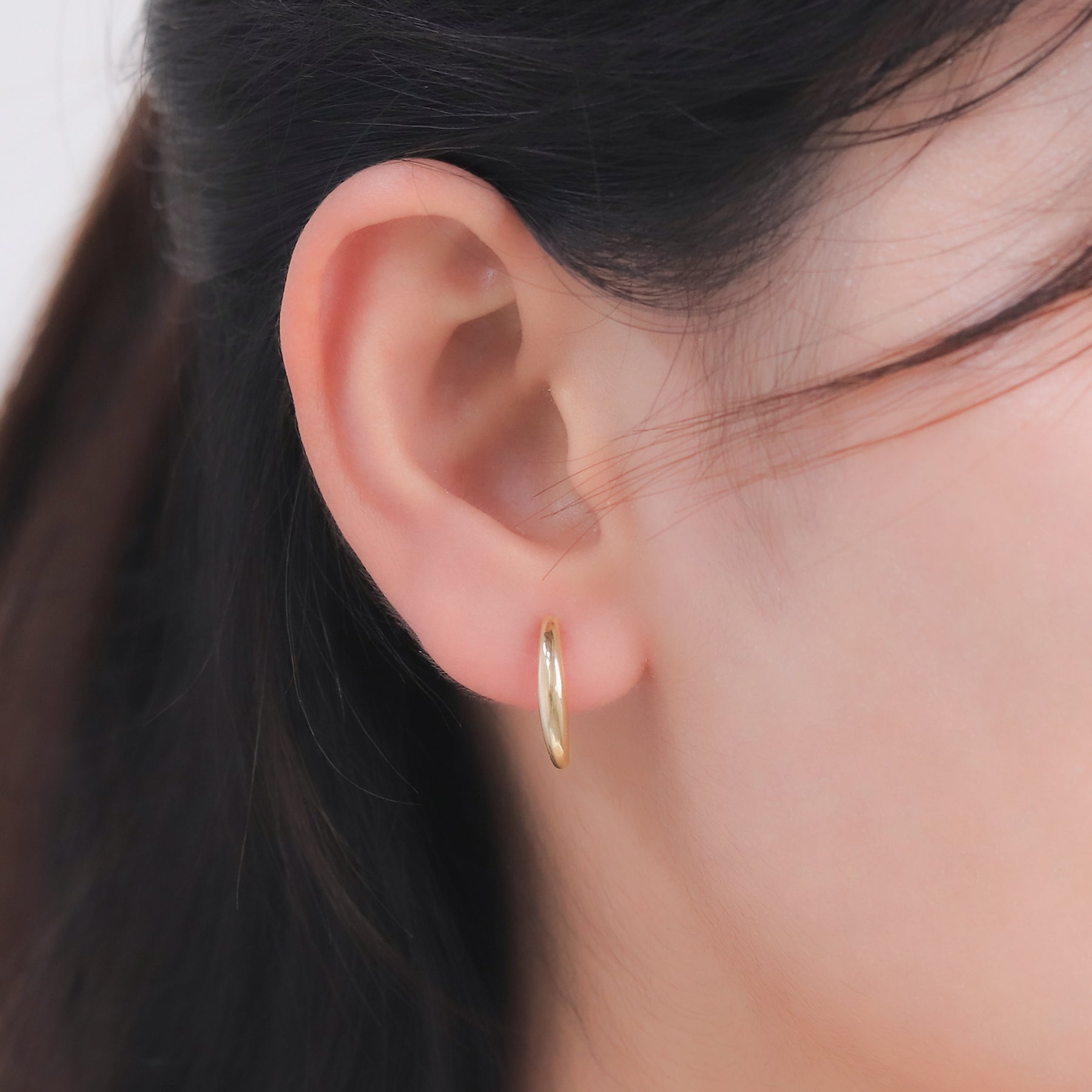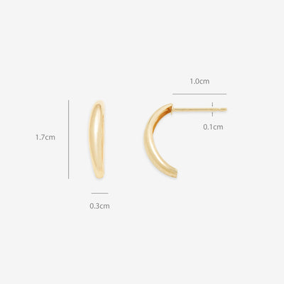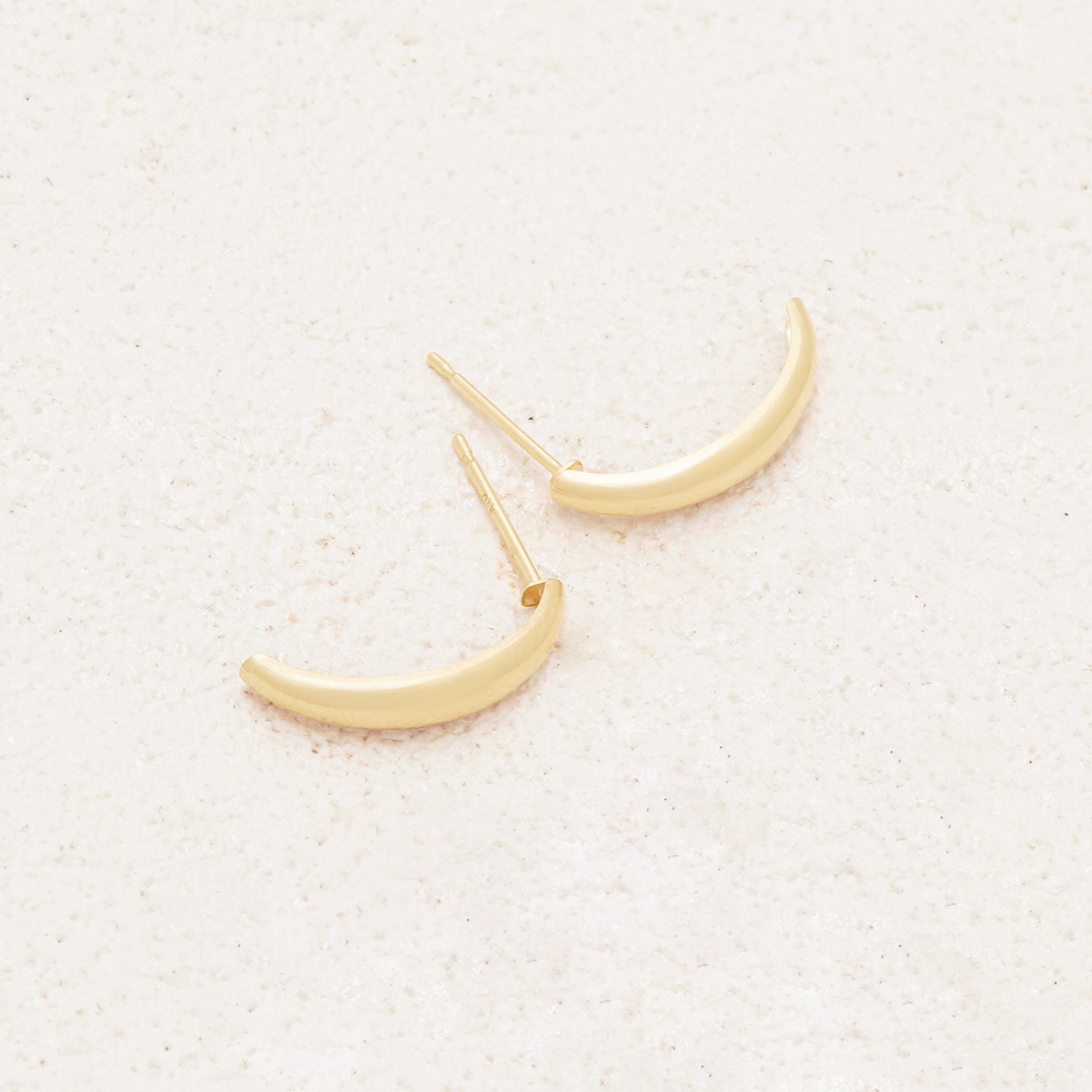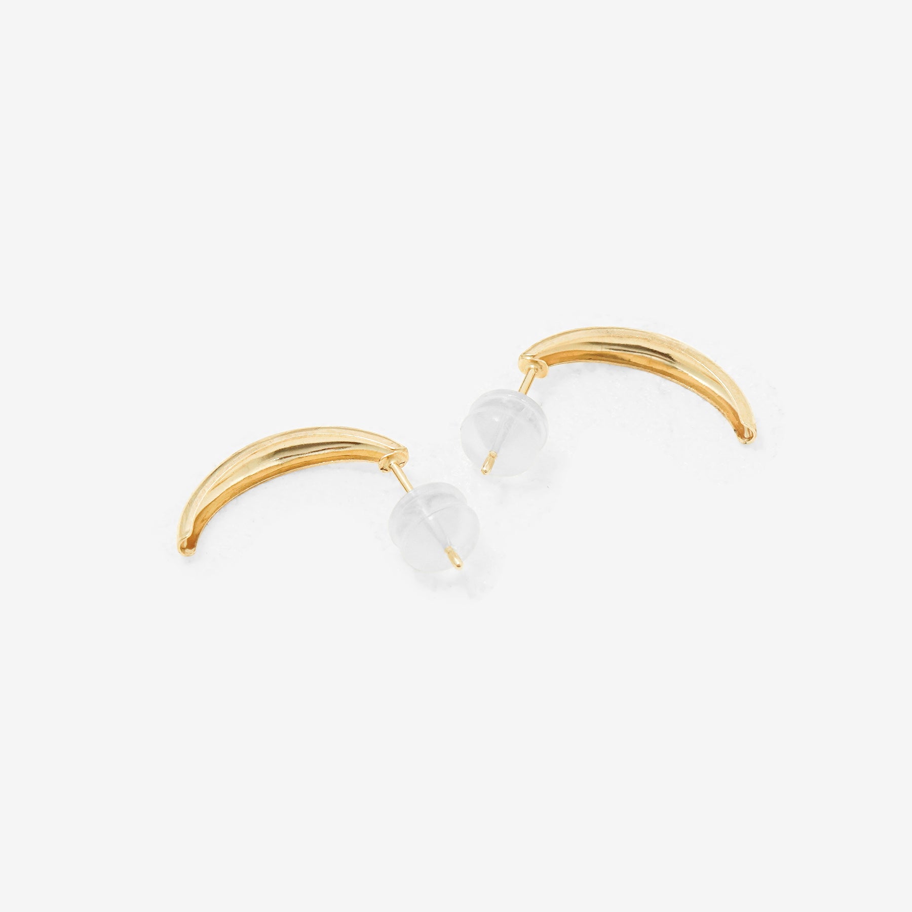 イエローゴールドの柔らかな色合いと立体感のある月甲デザインのピアスが、耳元に上品な華やかさをプラス。