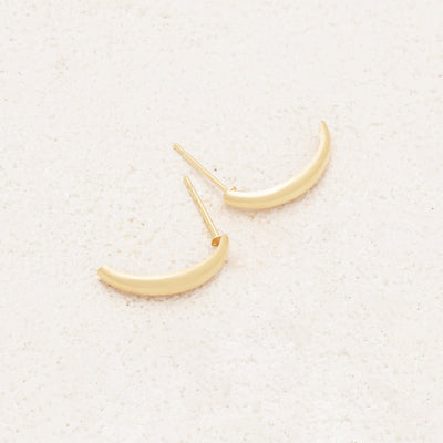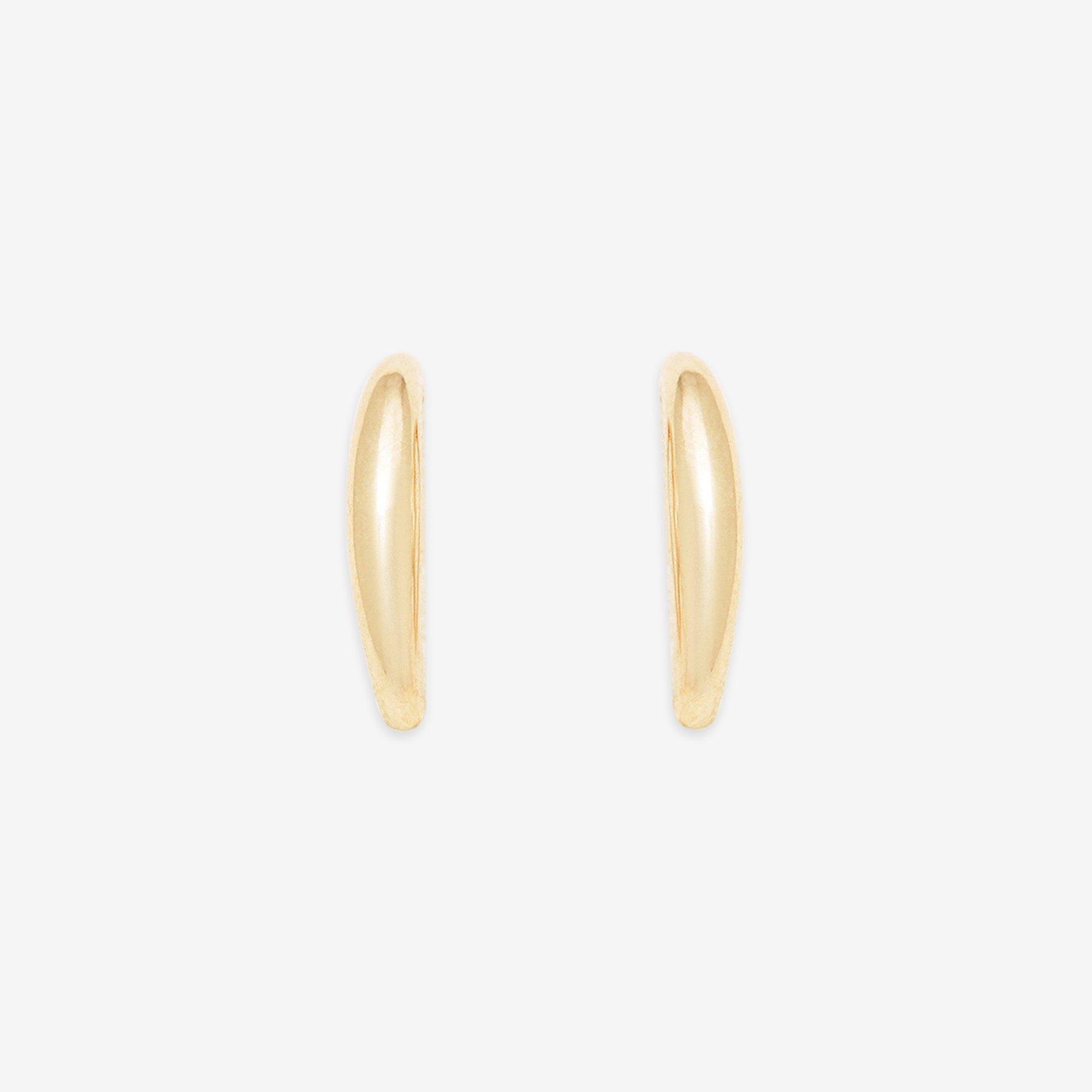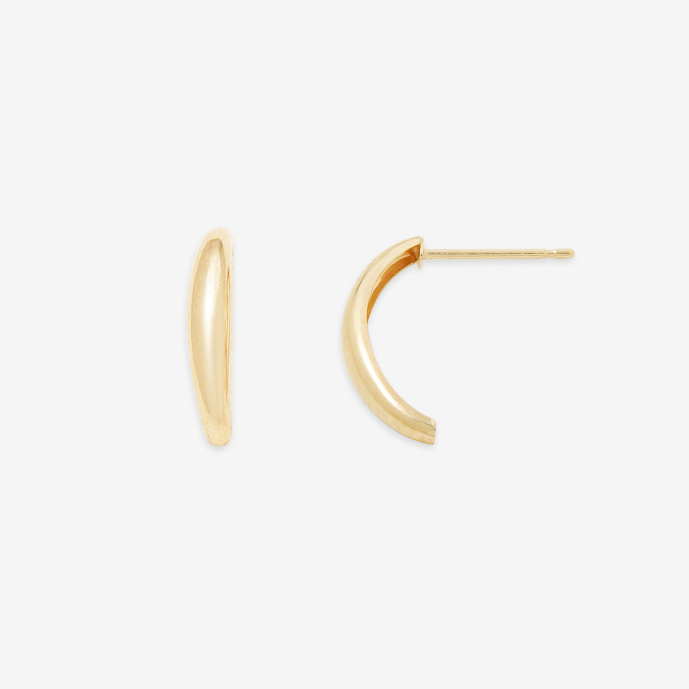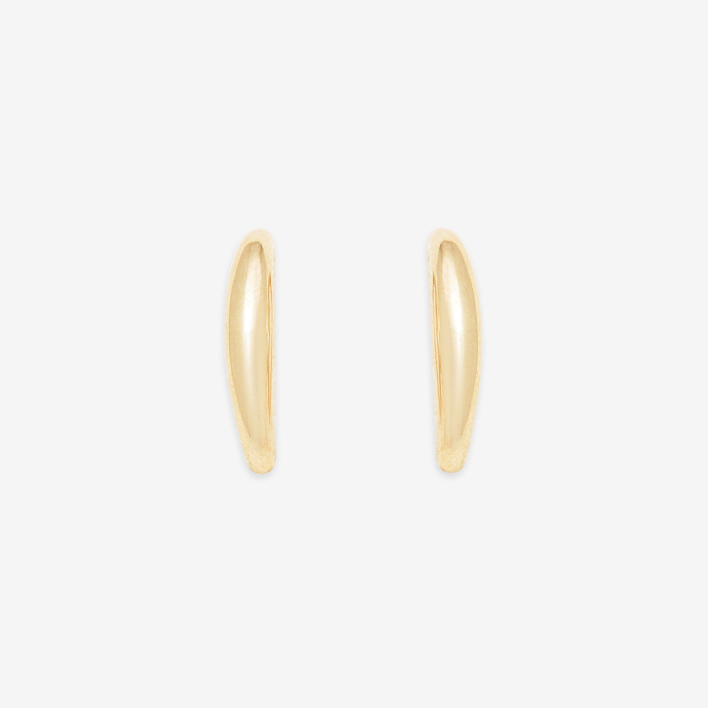 イエローゴールドの柔らかな色合いと立体感のある月甲デザインのピアスが、耳元に上品な華やかさをプラス。