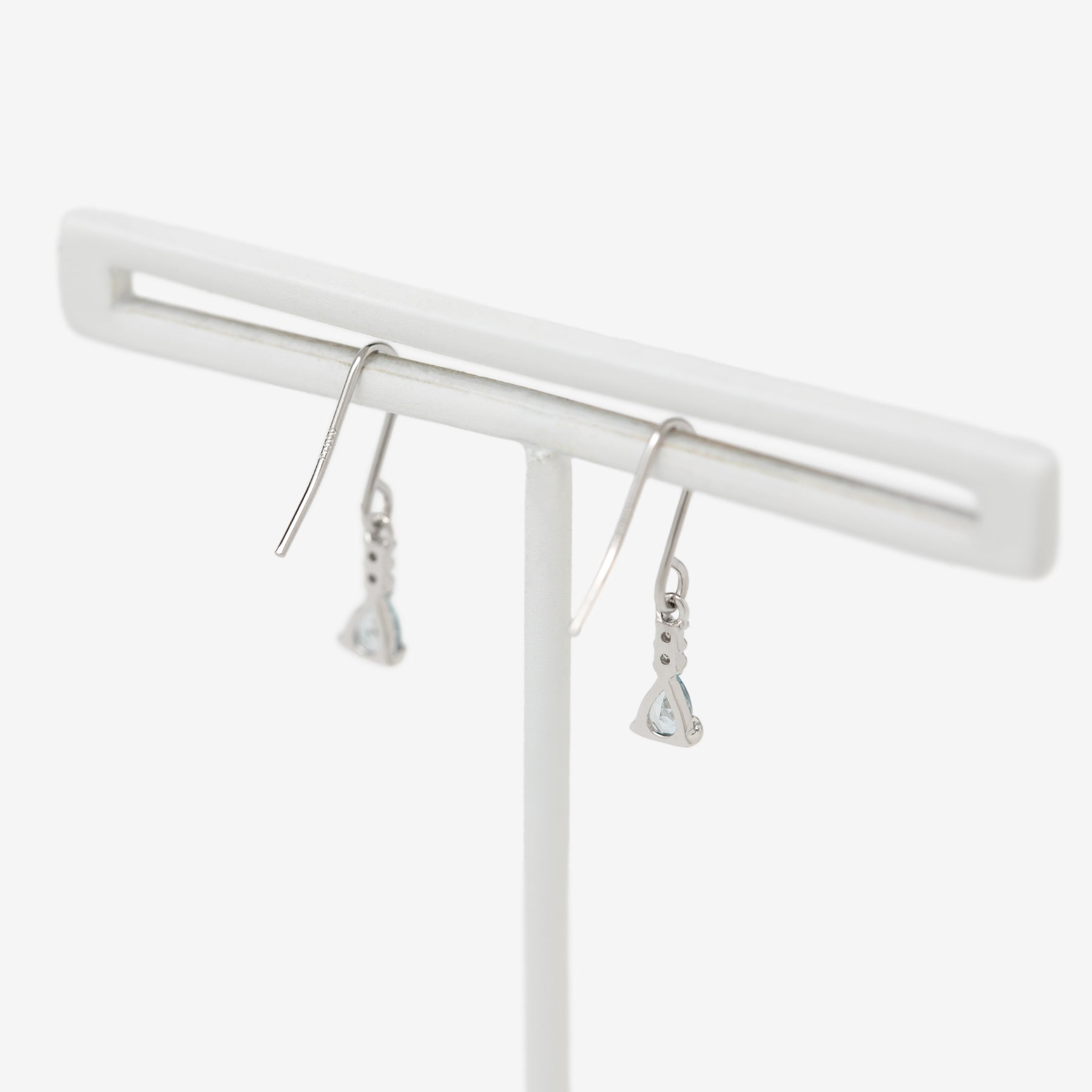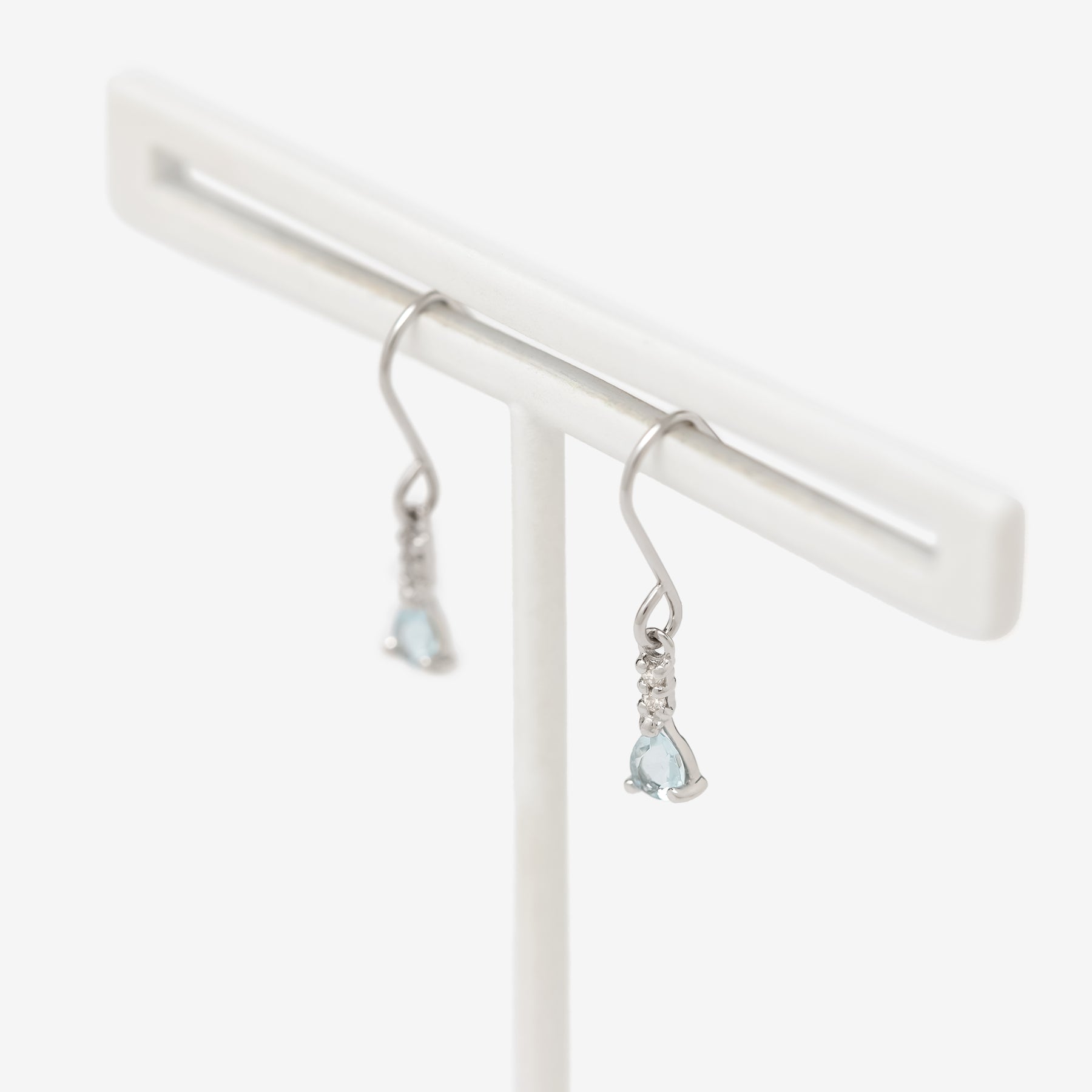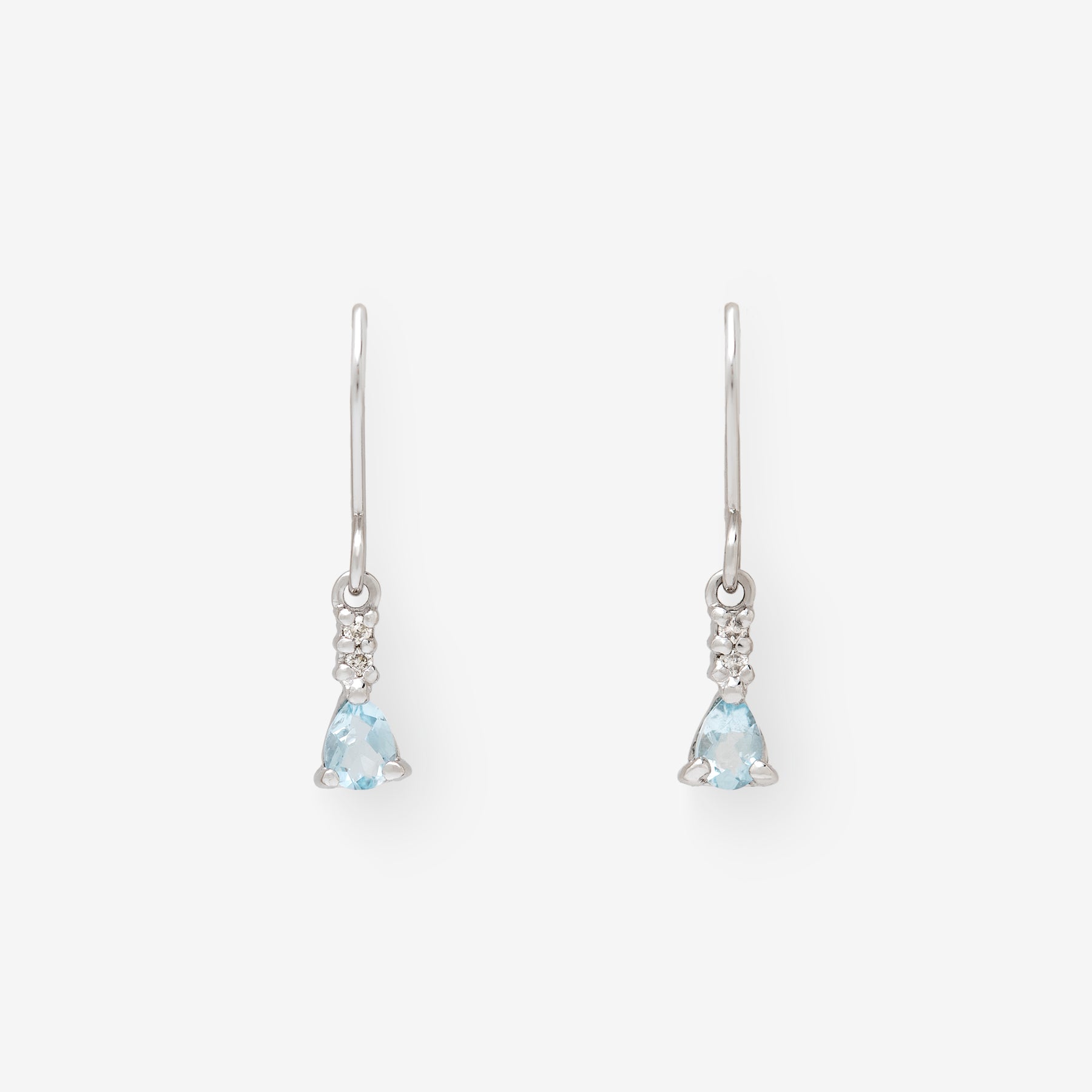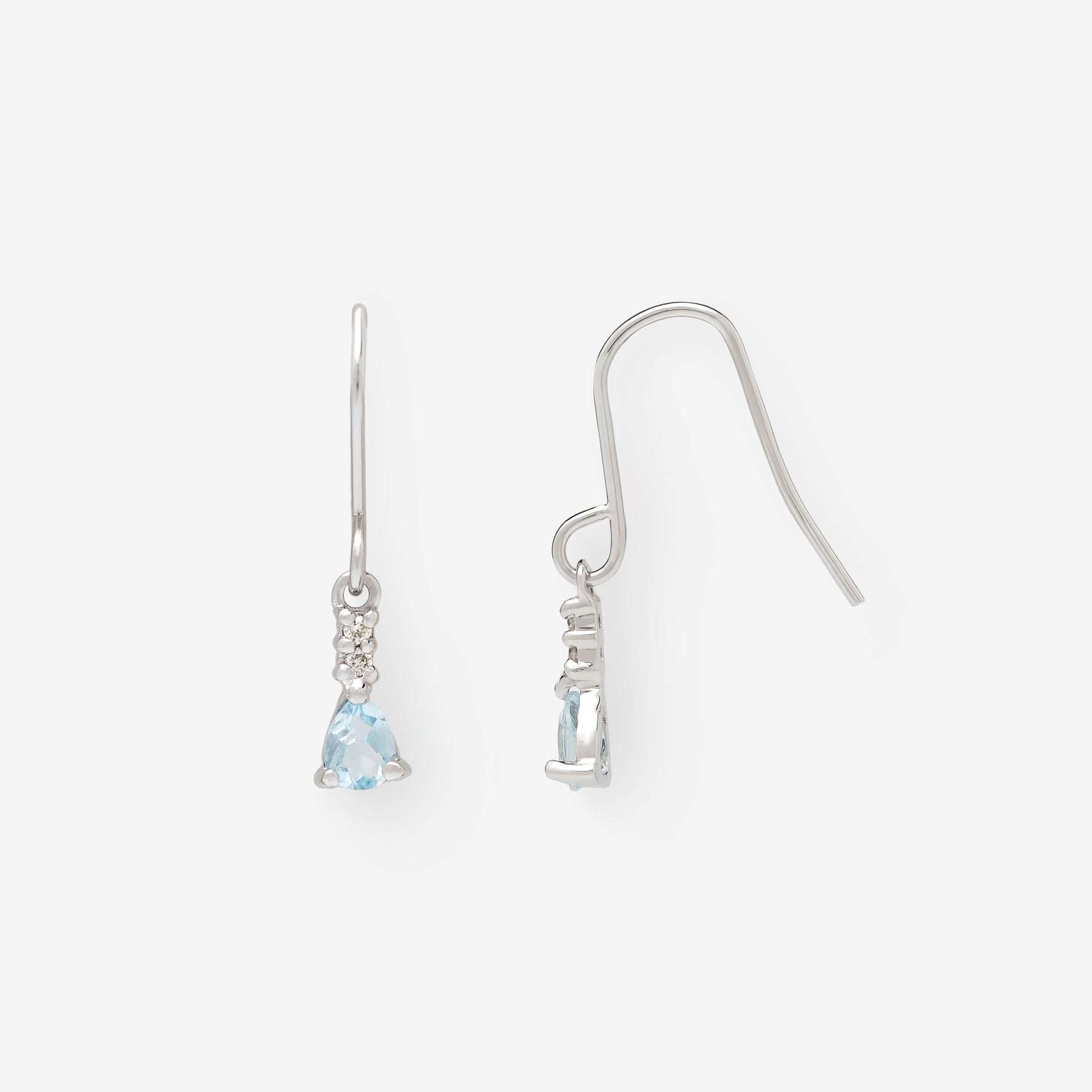 【Colors】透明感のあるアクアマリンが揺れる、軽やかなフックタイプのプラチナピアス。みずみずしいブルーの輝きが、顔まわりに清楚な印象を添えます。アクアマリンの上には小さなダイヤモンドをあしらい、動くたびにさりげないきらめきを演出。シンプルながらも上品な存在感があり、耳元を美しく引き立てます。デイリー使いはもちろん、特別な日の装いにもやさしく寄り添うピアスです。アクアマリンは3月の誕生石です。石言葉は「沈着」「勇敢」。ラテン語で「海の水」という意味のアクアマリン。海のパワーから穏やかな安らぎと癒しをもたらしてくれます。別名“天使の石”と呼ばれ、美しい若さと幸せな喜びを象徴するとされています。【ATTENTION】※熱や紫外線、湿度の影響により変色や変質、劣化の恐れがございます。ご使用後は柔らかな布で汚れを拭き取ってから、直射日光の当たらない場所での保管をお願いいたします。※天然石は素材の特性により、色や形、風合いなどが画像と多少異なる場合がございます。また、多少のインクルージョンやクラックがある場合がございます。予めご了承ください。※天然石は他の宝石と比べて柔らかく傷がつきやすいため、衝撃や摩擦にご注意ください。また、他のジュエリーと触れないように保管してください。※強い力を加えると変形の原因になりますので、お取り扱いにはご注意ください。