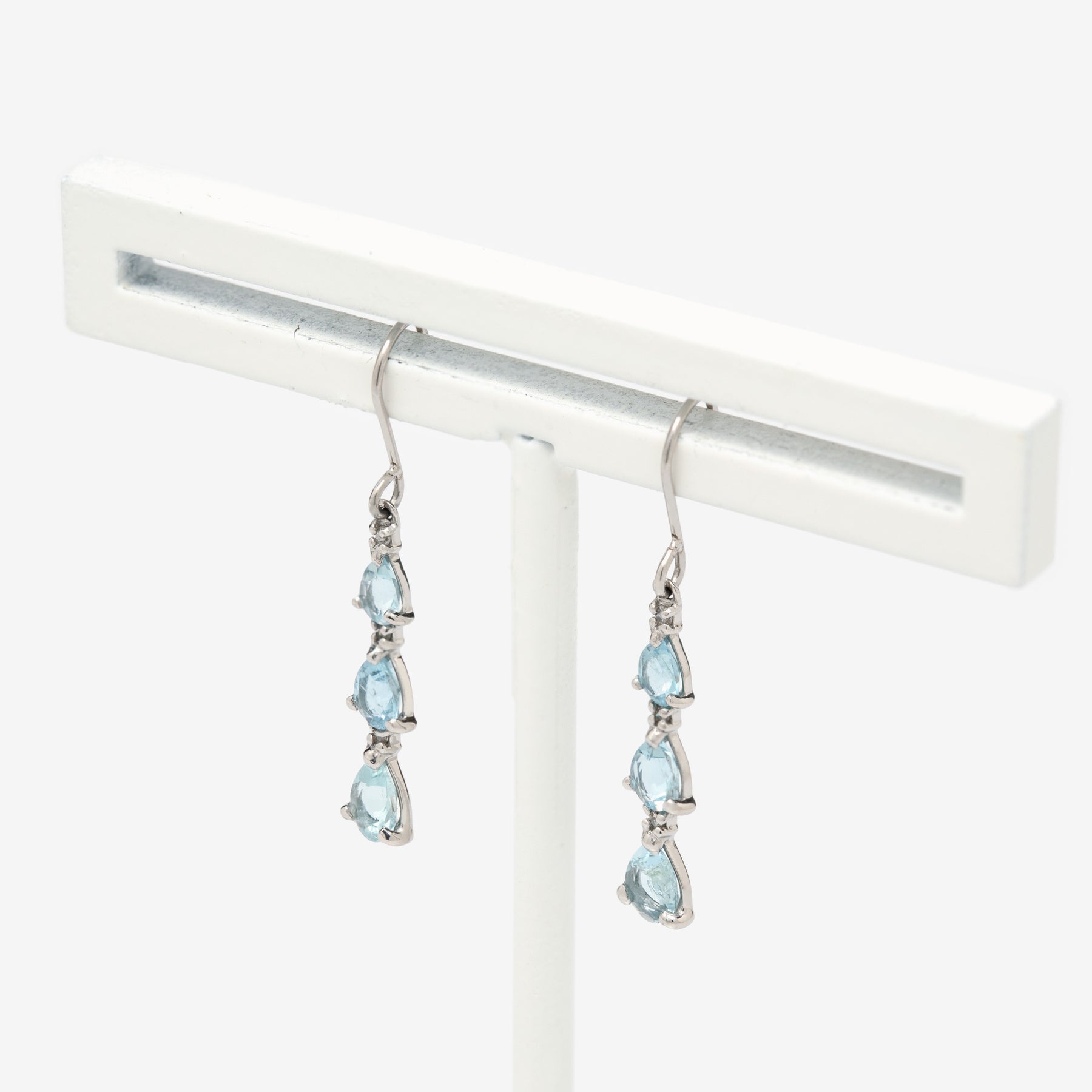 透明感のあるアクアマリンを連ねた、プラチナのエレガントなピアス。