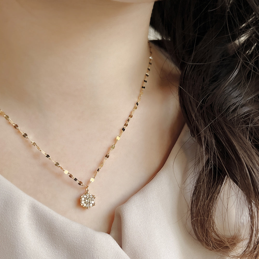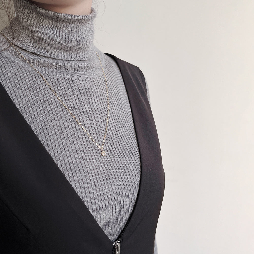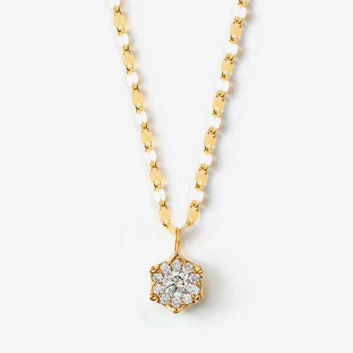 【asta Iris】1粒のダイヤモンドがきらめいているようなイエローゴールドのロングネックレス。花びらを重ねたような繊細なペタルチェーンがきらきらと輝き、胸元を華やかで洗練された雰囲気に。美しい輝きが永久的に続くダイヤモンドをシンプルにデザインしたネックレスは、シーンを選ばずお使いいただけます。頑張った自分へのご褒美や、大切な方への贈り物にもおすすめです。ダイヤモンドは4月の誕生石です。石言葉は「清浄無垢」「永遠の愛」。心身を浄化し周囲にある邪気を払ってくれる力があるとされています。最大の幸福を呼び込むサポートとなってくれそうです。【ATTENTION】※熱や紫外線、湿度の影響により変色や変質、劣化の恐れがございます。ご使用後は柔らかな布で汚れを拭き取ってから、直射日光の当たらない場所での保管をお願いいたします。※天然石は素材の特性により、色や形、風合いなどが画像と多少異なる場合がございます。また、多少のインクルージョンやクラックがある場合がございます。予めご了承ください。※引っ張ったり、強い力を加えると不良や変形の原因となりますので、お取り扱いにはご注意ください。