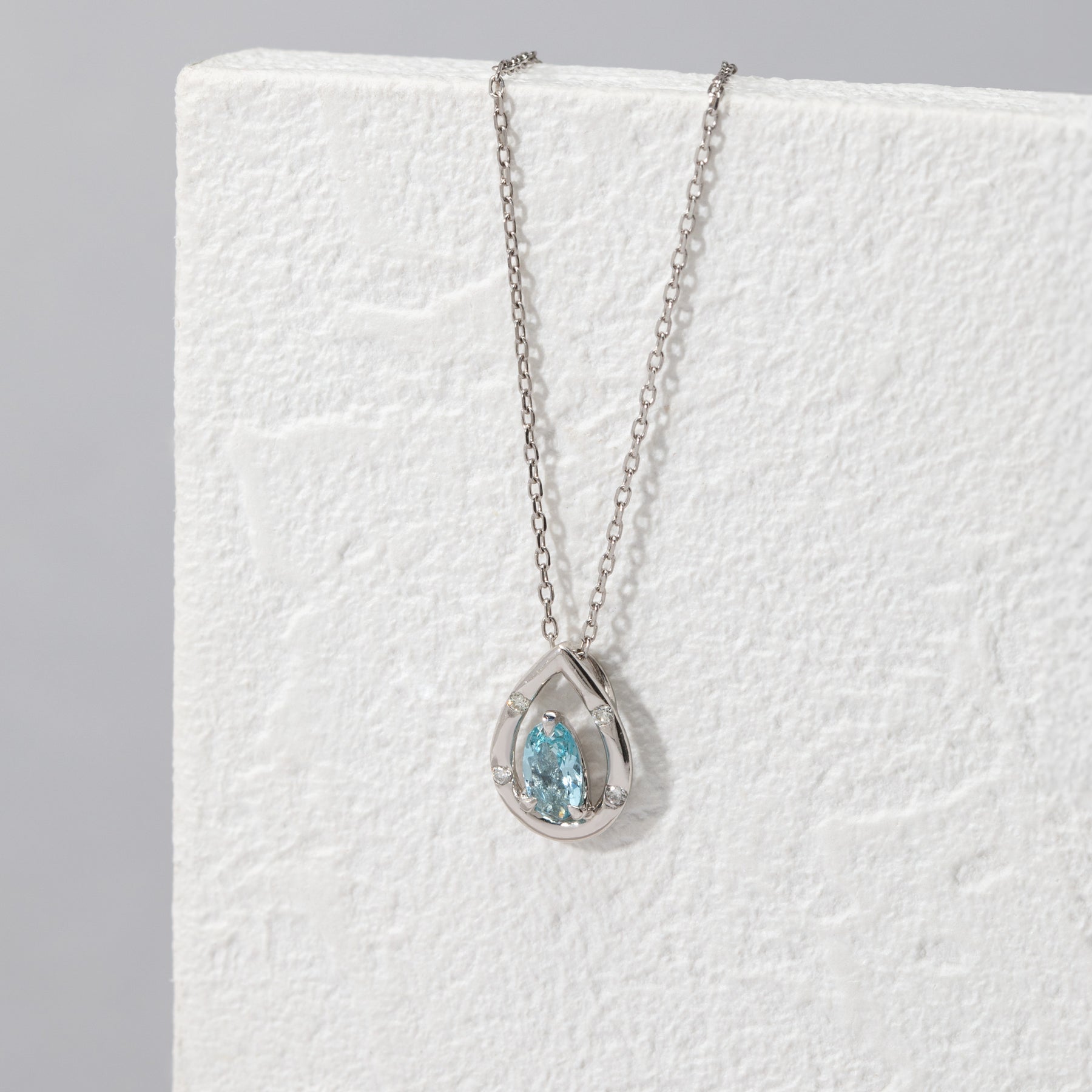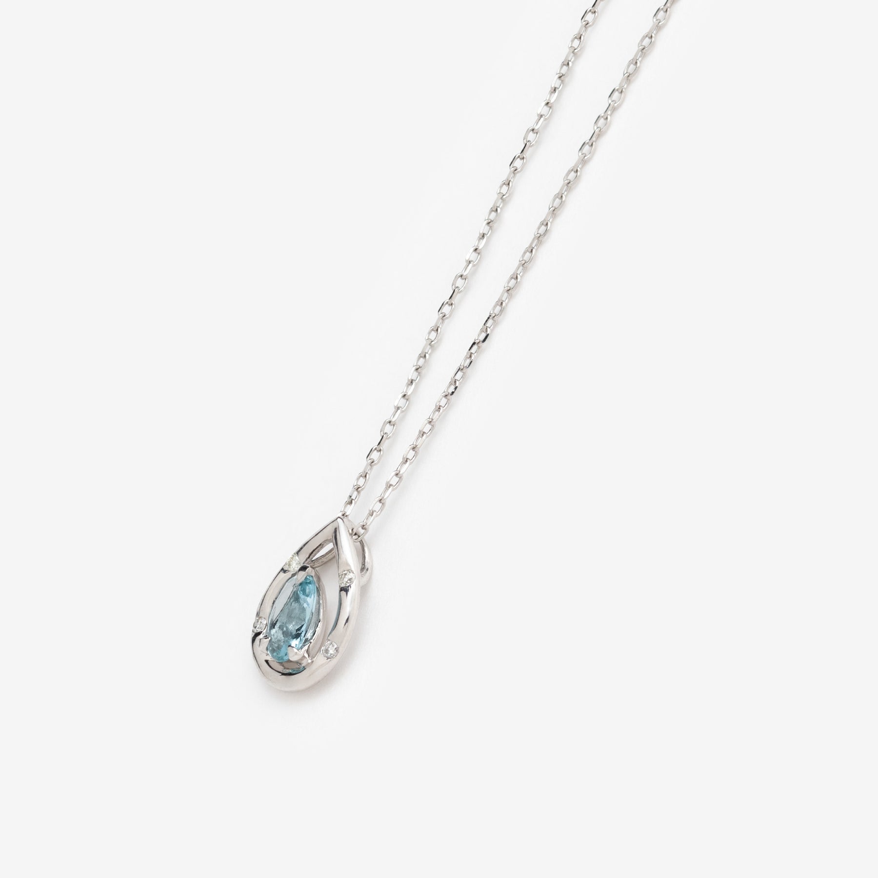 【Colors】しずくモチーフに澄んだ海のようなアクアマリンをセットした、プラチナのネックレス。アクアマリンのやさしいブルーは、光の角度によってほのかに表情を変え、日常にも特別なシーンにも自然に馴染みます。ひとつ身に着けるだけで、落ち着いた透明感を添えてくれるアイテムです。プラチナの上品なつやめきが洗練された印象を引き立て、長く大切にしたくなるタイムレスなデザインに仕上げました。シンプルでありながらほどよい存在感があり、ギフトにも自分へのご褒美にもおすすめです。アクアマリンは3月の誕生石です。石言葉は「沈着」「勇敢」。ラテン語で「海の水」という意味のアクアマリン。海のパワーから穏やかな安らぎと癒しをもたらしてくれます。別名“天使の石”と呼ばれ、美しい若さと幸せな喜びを象徴するとされています。【ATTENTION】※熱や紫外線、湿度の影響により変色や変質、劣化の恐れがございます。ご使用後は柔らかな布で汚れを拭き取ってから、直射日光の当たらない場所での保管をお願いいたします。※天然石は素材の特性により、色や形、風合いなどが画像と多少異なる場合がございます。また、多少のインクルージョンやクラックがある場合がございます。予めご了承ください。※天然石は他の宝石と比べて柔らかく傷がつきやすいため、衝撃や摩擦にご注意ください。また、他のジュエリーと触れないように保管してください。※引っ張ったり、強い力を加えると不良や変形の原因となりますので、お取り扱いにはご注意ください。