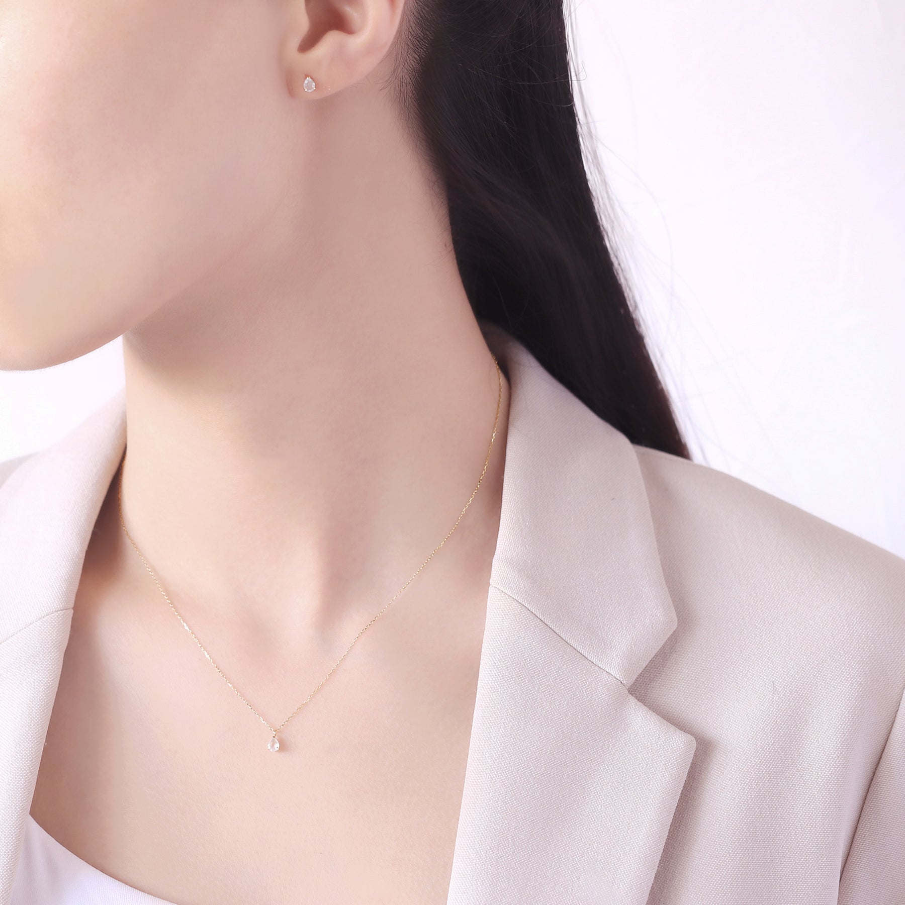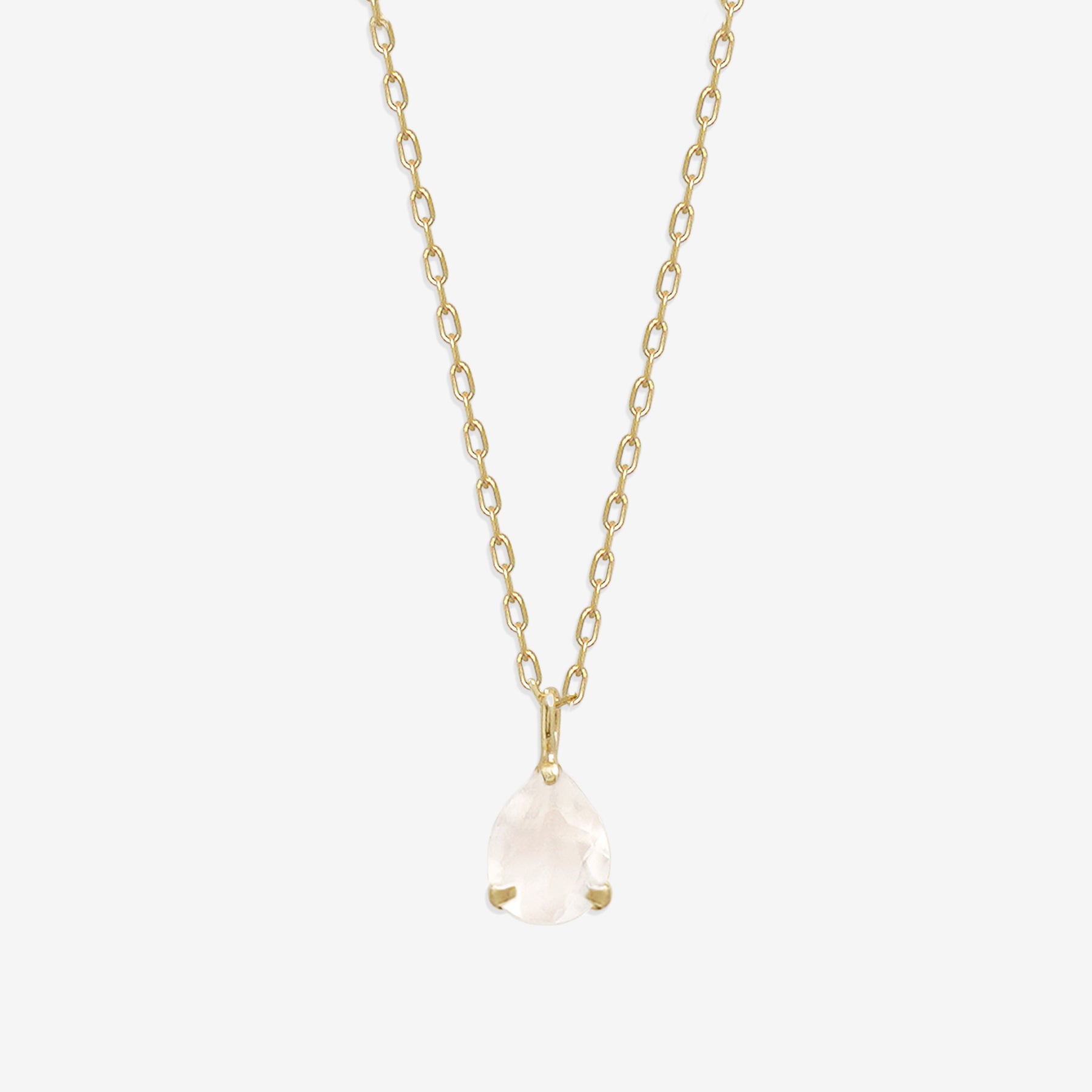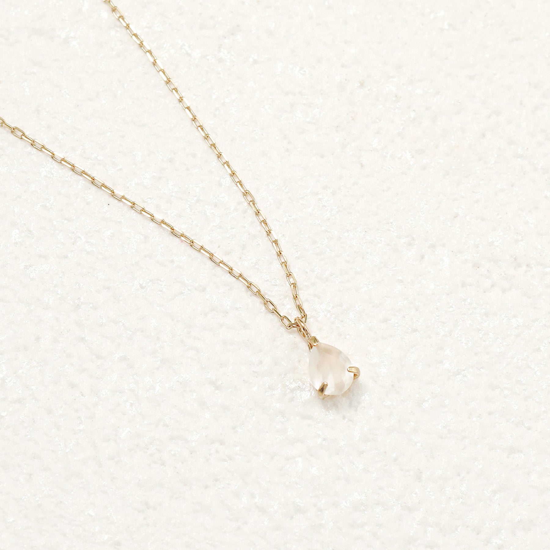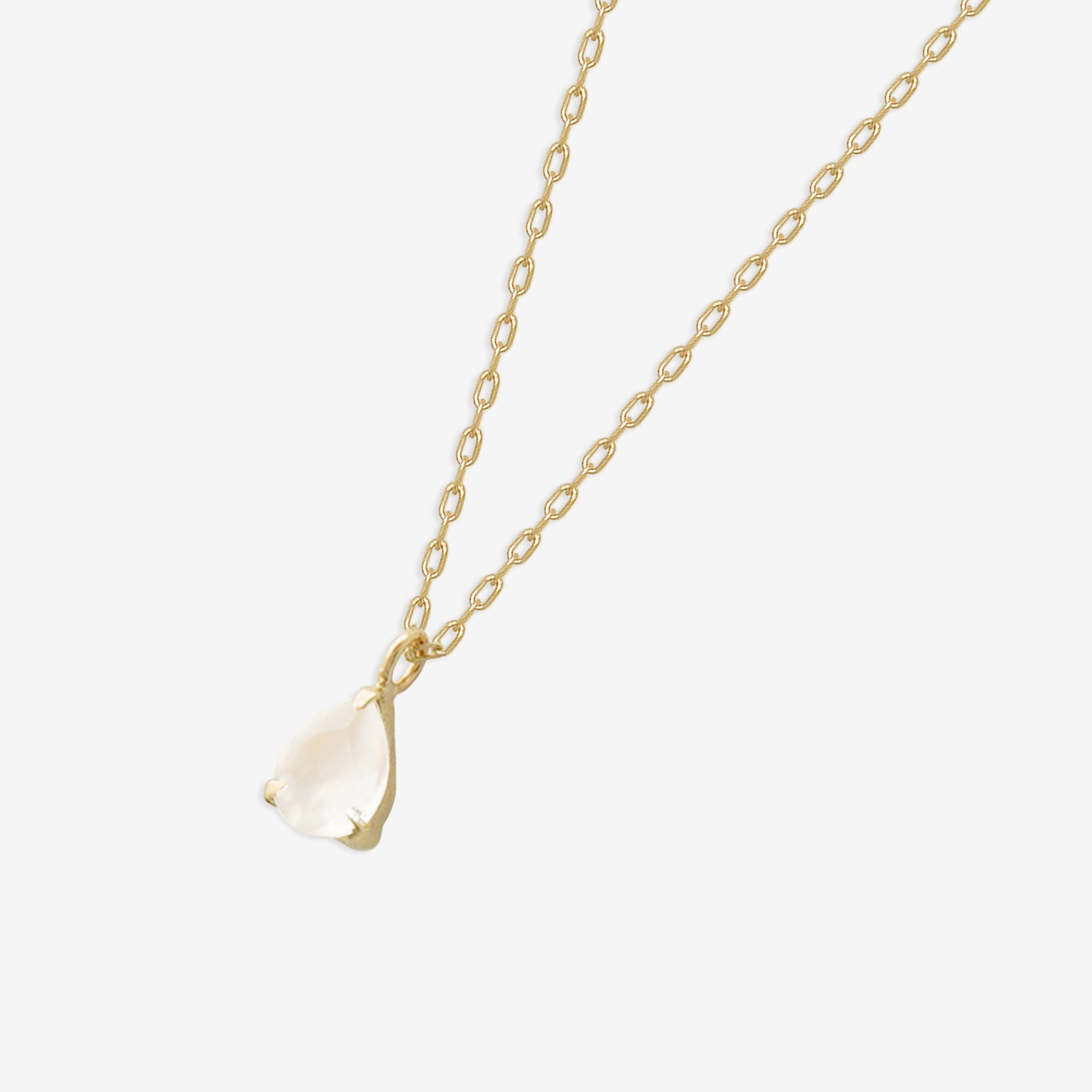 【Birthstone Collection】ペアシェイプカットのムーンストーンをあしらった、イエローゴールドのネックレス。シンプルで洗練されたフォルムが、ムーンストーンの柔らかな輝きを静かに引き立て、胸元に上品なアクセントを添えます。オフィススタイルには知的で凛とした印象を、プライベートシーンでは控えめながらも華やかな雰囲気を演出。控えめながらも存在感のあるデザインで、日常にさりげない彩りを与えてくれる一品です。誕生石からお選びいただけるため、ご自身へのご褒美としてはもちろん、大切な方への贈り物にも最適です。ムーンストーンは6月の誕生石です。石言葉は「健康」「幸運」「恋の予感」。女性のシンボルでもある月の光を宿したようなムーンストーンは、女性をサポートしてくれる力にあふれています。【ATTENTION】※熱や紫外線、湿度の影響により変色や変質、劣化の恐れがございます。ご使用後は柔らかな布で汚れを拭き取ってから、直射日光の当たらない場所での保管をお願いいたします。※天然石は素材の特性により、色や形、風合いなどが画像と多少異なる場合がございます。また、多少のインクルージョンやクラックがある場合がございます。予めご了承ください。※天然石は他の宝石と比べて柔らかく傷がつきやすいため、衝撃や摩擦にご注意ください。また、他のジュエリーと触れないように保管してください。※引っ張ったり、強い力を加えると不良や変形の原因となりますので、お取り扱いにはご注意ください。